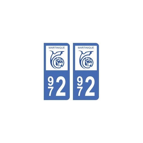 Autocollants Stickers aux dimensions des plaques d'immatriculation du département 972 officiel et conforme aux dimensions des plaques d'immatriculations d'origines pour voiture auto.