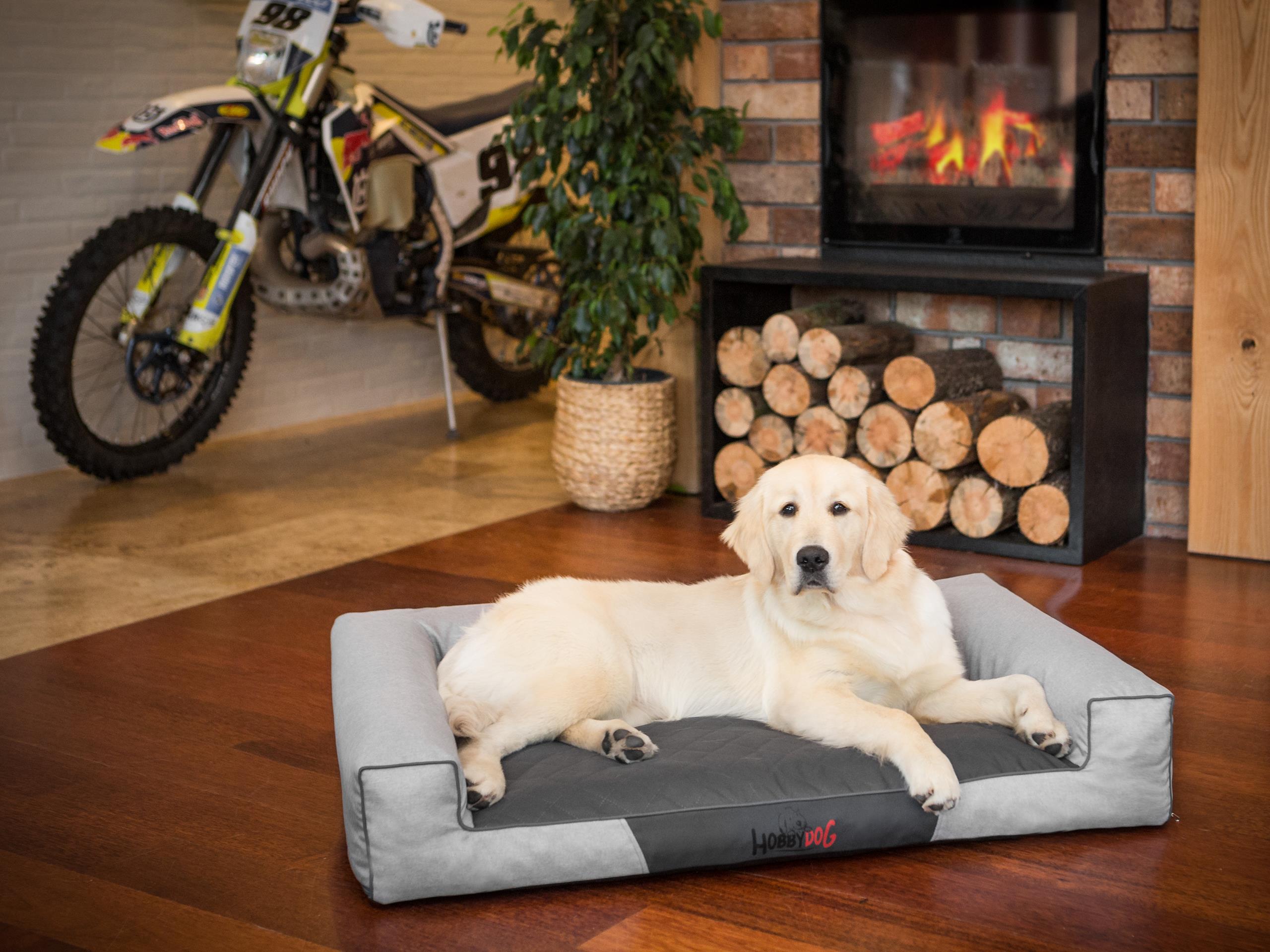 Das Hundbett ist aus Oxford gemacht, das eine lange Lebensdauer gewährleistet (+ Ökoleinen Option verfügbar). Der Stoff ist resistent gegen Schmutz und Kratzer, nimmt praktisch keine Feuchtigkeit auf und trocknet sehr schnell, auch ohne Imprägnierung hat es eine hohe Wasserbeständigkeit. Lässt sich einfach mit einem feuchten Tuch wischen und der Schmutz verschwindet. Jede der Seiten hat im Inneren, herausnehmbare Walzen, die mit Polyurethan-Schaum ausgestopft sind. Der Bezug können bei 30°C gewaschen werden, was uns ermöglicht, das Hundekissen sauber zu halten. Die Füllung hat eine hohe Beständigkeit gegen Verformungen, verliert seine Elastizität nicht und gibt viel Wärme. Das Sofa ist komplett zerlegbar, dank dem Reißverschluss können Sie schnell den Bezug herunternehmen.