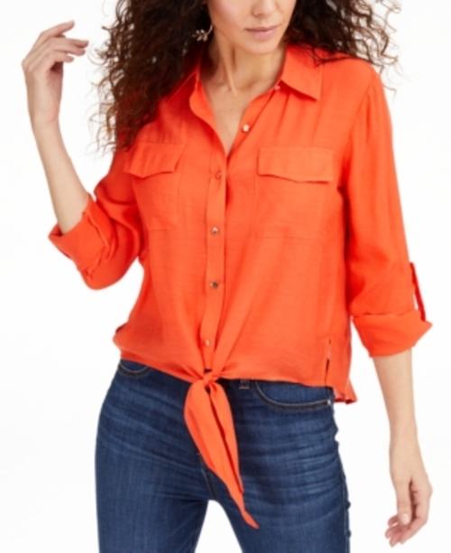 Who knew a simple detail could look so cute? Thalia Sodi pulls this button-front top together with a tie at the waist.