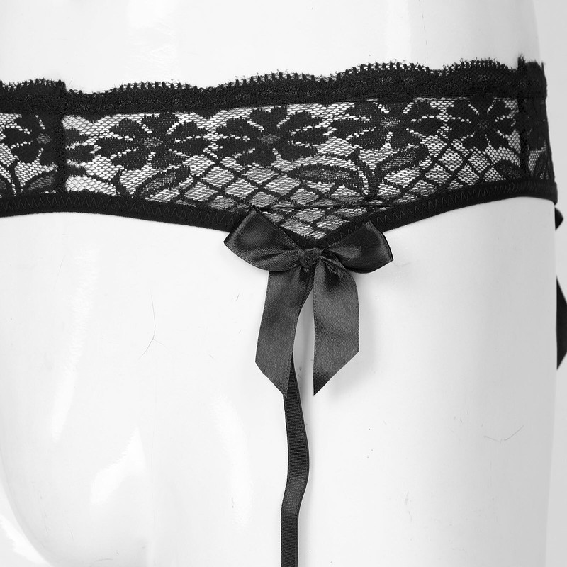 Men Sheer Lace Suspenders Sissy Lingerie Sleepwear Bowknot Elastic Waistband Garter Belt for Stockings.