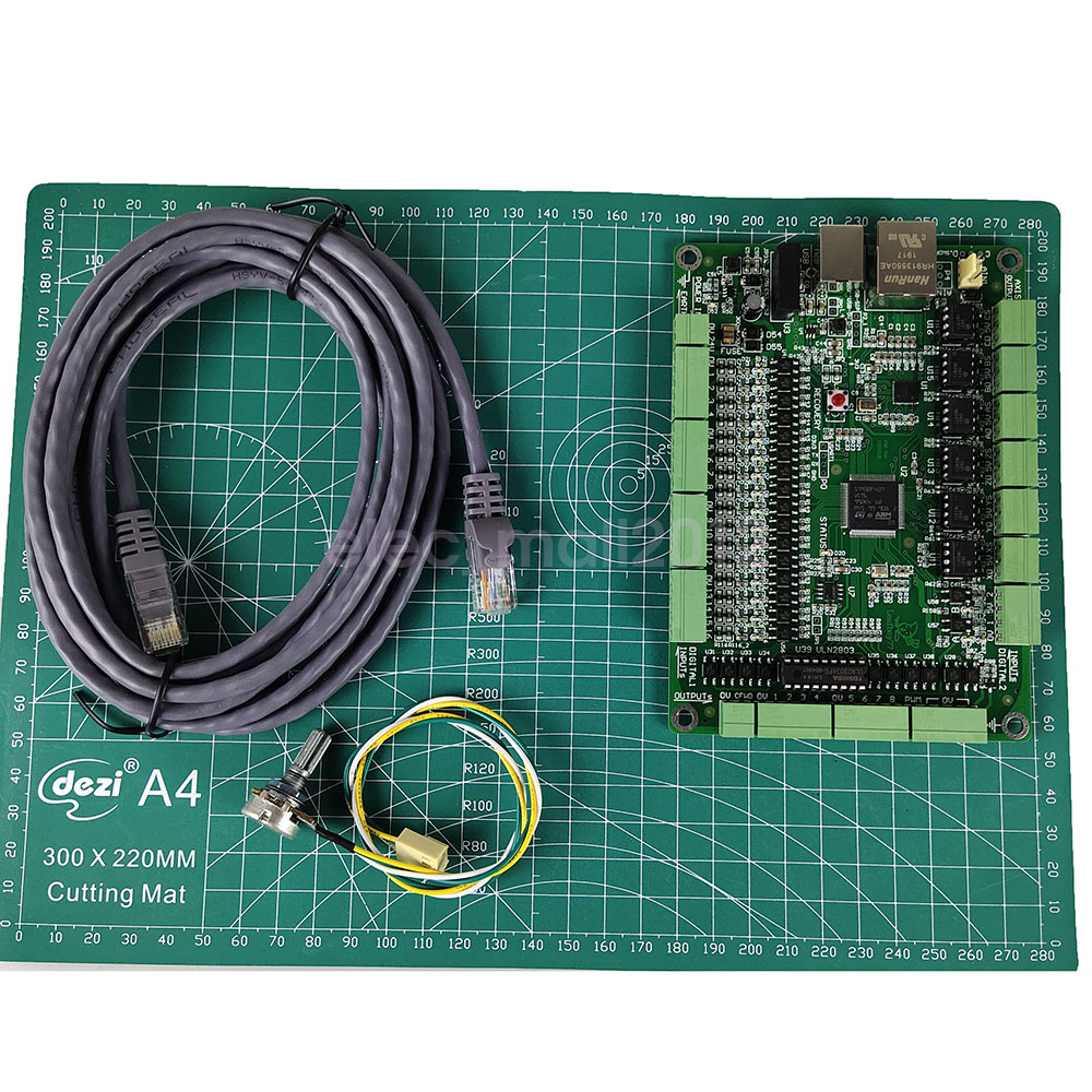Fast Ethernet interface, built-in network transformer isolation, supports long-distance wired connection. With a wireless router, it can realize the wireless connection between the PC and the motion control board. Supports 6-axis linkage, can output 500KHz at the same time, and connect to servo/stepping. Any one axis can be configured as a pulse spindle.