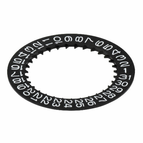 This listing offers an authentic, brand-new Seiko Date Disc. The disc is finished in black, featuring white numbers. Designed specifically for Seiko timepieces, this Date Disc fits various models and watch movements.