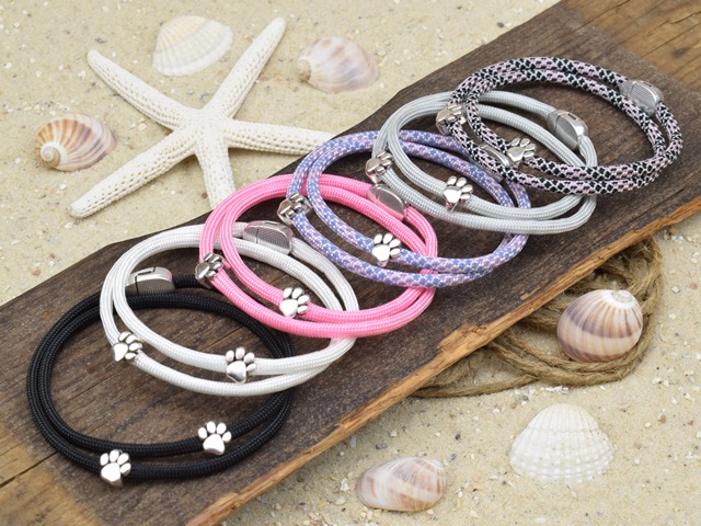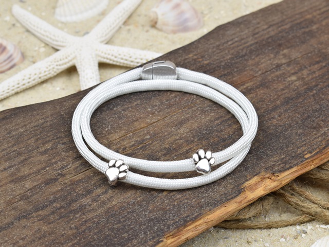 Maritimes Wickelarmband BELLA - handgefertigt aus Paracord in verschiedenen Farben & Größen mit zwei Schiebeperlen und einem Magnetverschluss erhältlich.
