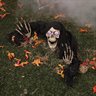 LED Skeleton Ground Breaker. Add this Halloween outdoor decoration to your yard just in time to surprise trick-or-treaters! Its wide, bulging eyes light up in an assortment of different colors. Hands include metal stakes for secure ground placement. This spooky skelly will look great displayed in the front yard or incorporated into your haunted house displays. Requires 2 "AA" batteries, not included.br