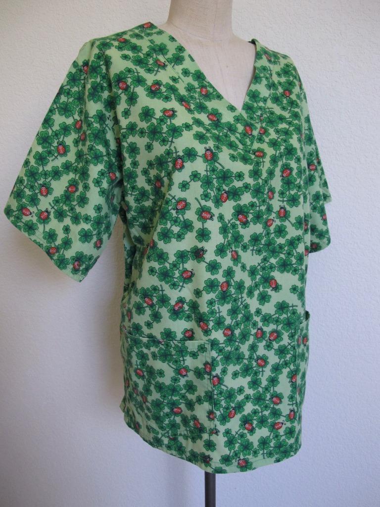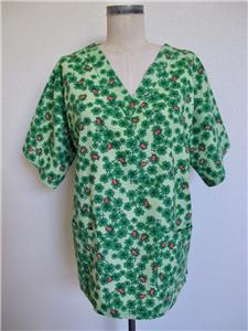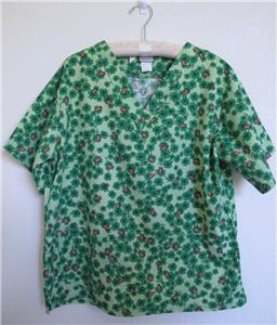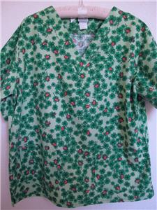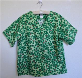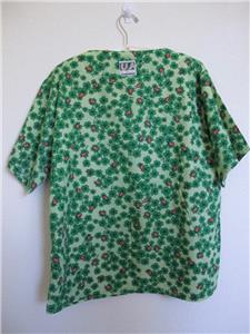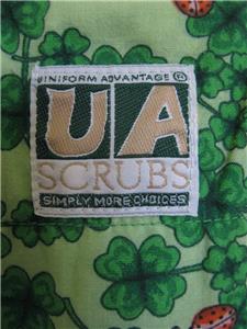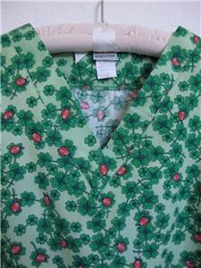 UA Uniform Advantage Scrub Top M Ladybugs Four Leaf Clovers Shamrocks Green