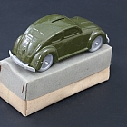 " VERY RARE PROMOTIONAL READ OF 1938 VOLKSWAGEN COCCINELLE WITH ITS ORIGINAL BOX Designed by an Austrian engineer, Ferdinand Porsche, in 1938, the Beetle was a resounding success upon its release, to the point of dethroning the famous Ford T, and becoming the best-selling vehicle in the world. You don't have to redo a drawing: everyone knows that the famous Volkswagen, the people's car of the German government, was developed by Ferdinand Porsche. An engineering model which however will not see mass production during the war. Only 630 "KdF-Wagen" were produced in 1938. The wind in the sails of the Ladybug comes with British tutelage. After the war, the Allied forces repackaged the Wolfsburg arms plant into an automobile assembly unit. It was, at the time, a good solution to give work to the Germans and put the country afloat. From Type 1 to Ladybug It was then that on December 27, 1945, the Wolfsburg plant began production of the Type 1, based on Mr. Porsche's designs. This is how the first chapter of a unique story began. Thanks to the assembly line production method, the first Volkswagen would continue to be assembled until the next century. "
