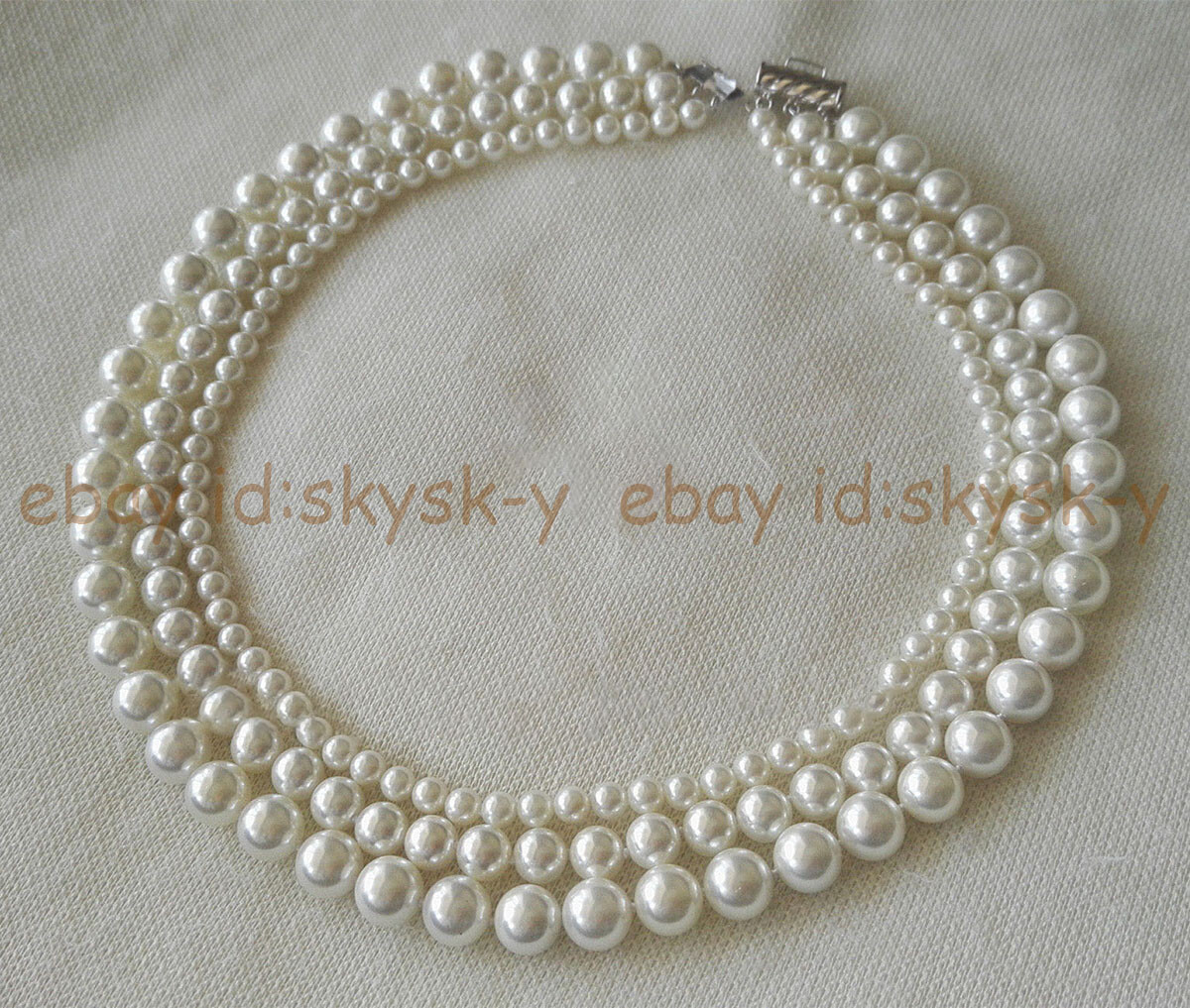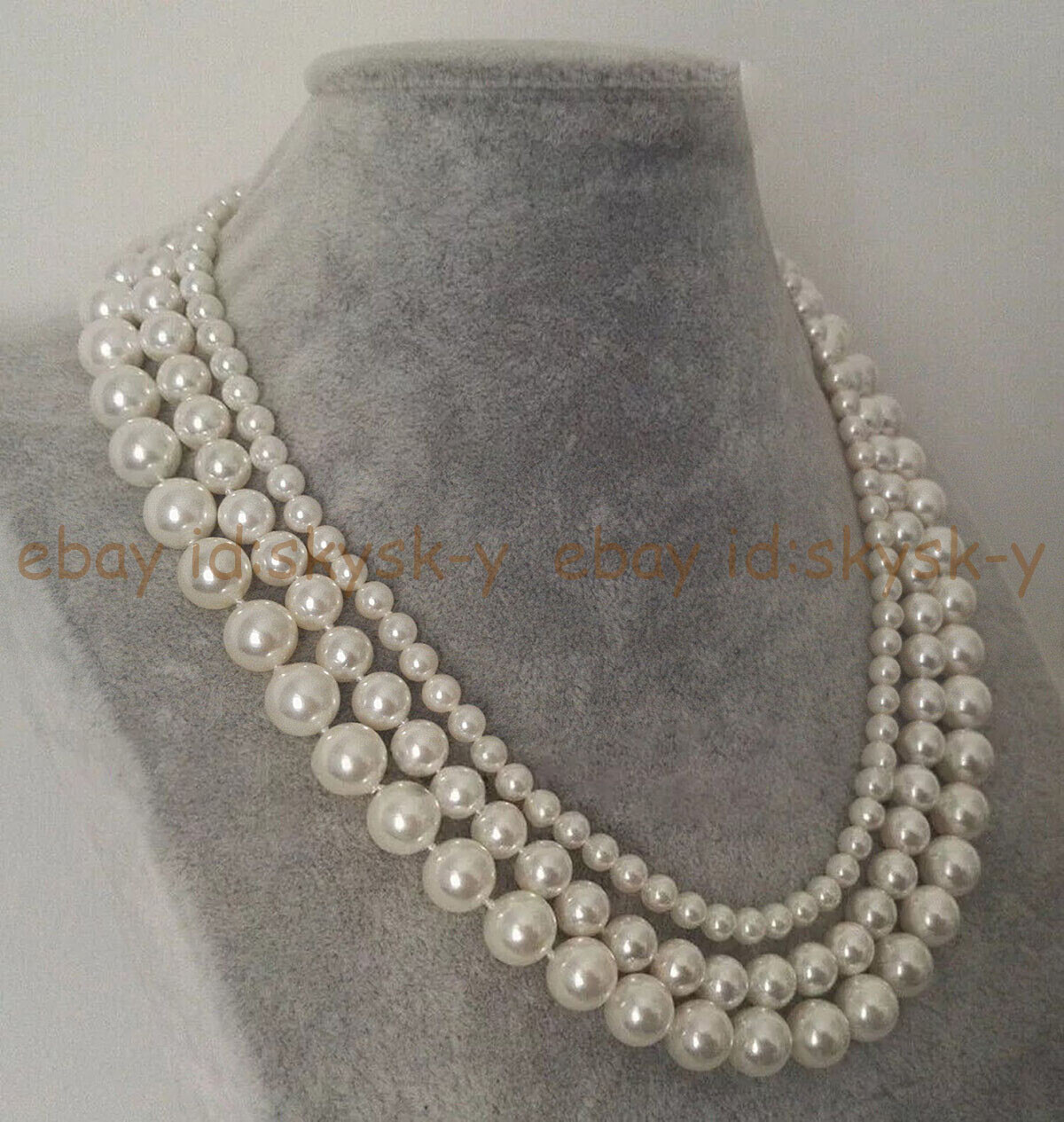 3 Rows 6-8-10mm South Sea White Shell Pearl Round Beads Necklace 18-20 inch