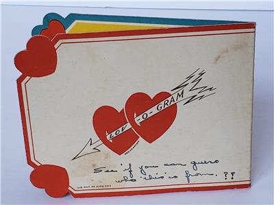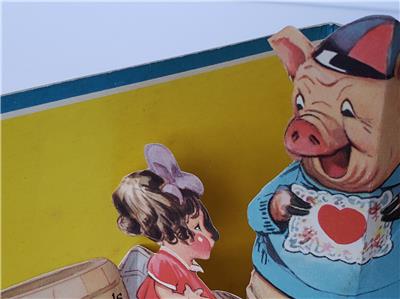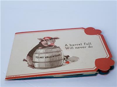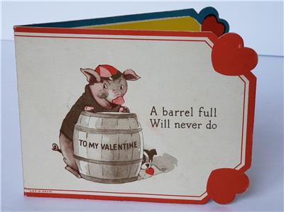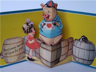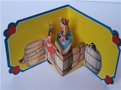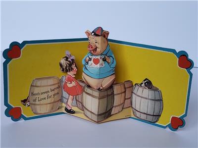 ITEM: Vintage Lov-o-gram Pop Up Pig 3D Valentine's Day Card * It measures approx 5 1/8" x 4" when closed and 10 1/4" when opened fully