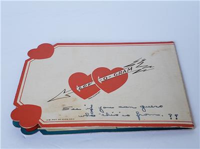 CONDITION: This is from someone's personal card/post card collection that I just acquired with most ranging from the early 1900s-60s (I put most of them in my local shop but this one was too cute, I had to show the world, haha). This super old Valentine does display wear, stains, writing from use/age/storage and appears to be from the 30s. Someone from back in the good ol days wrote on the back to give to their Valentine, "See if you can guess who this is from?". Ships to you from a clean, non-smoking, pet free environment.