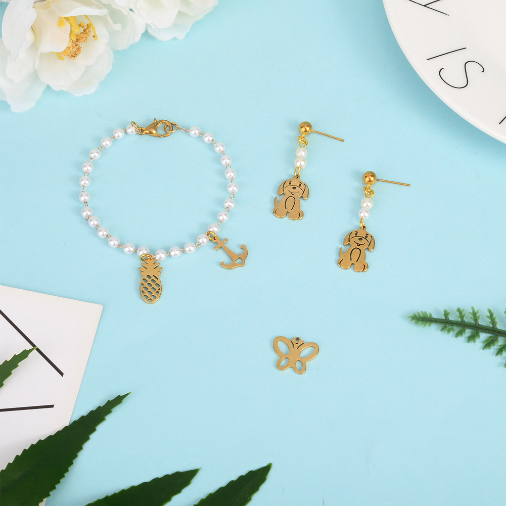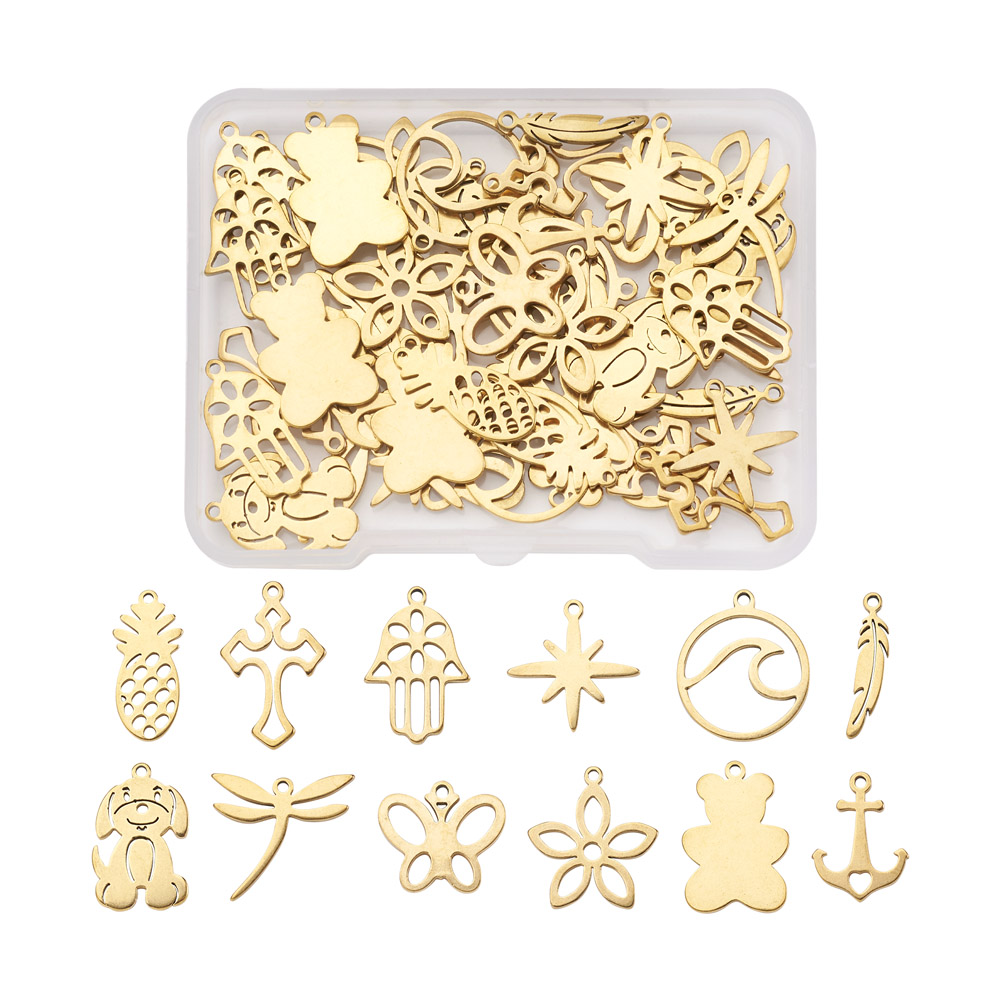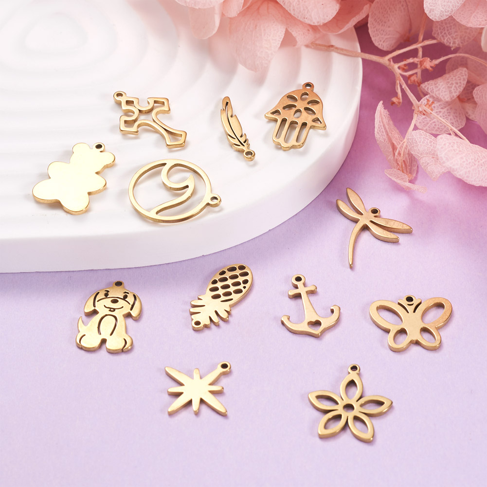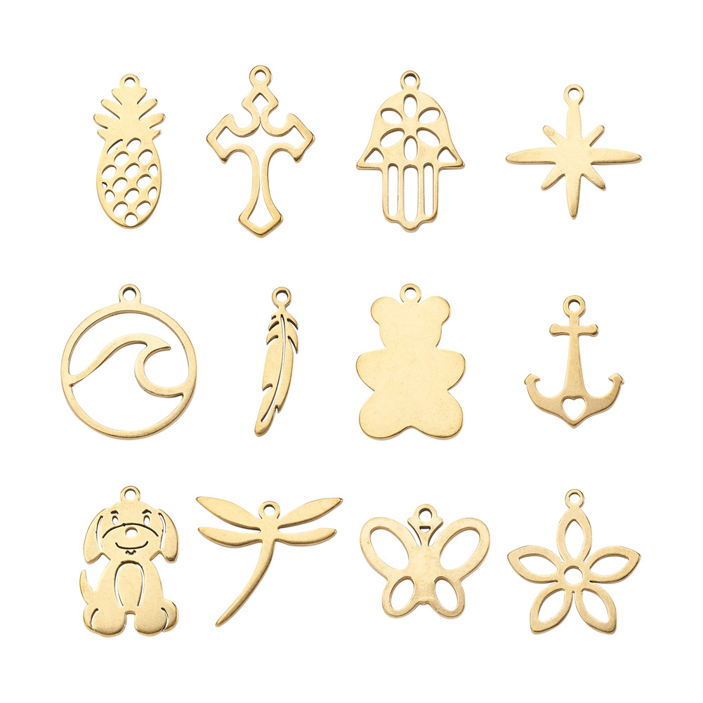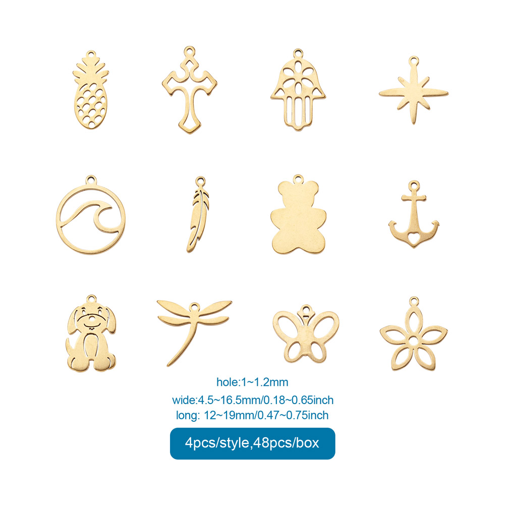 48pc Golden Bear Butterfly Cross Dog Flower 304 Stainless Steel Pendants 12~19mm