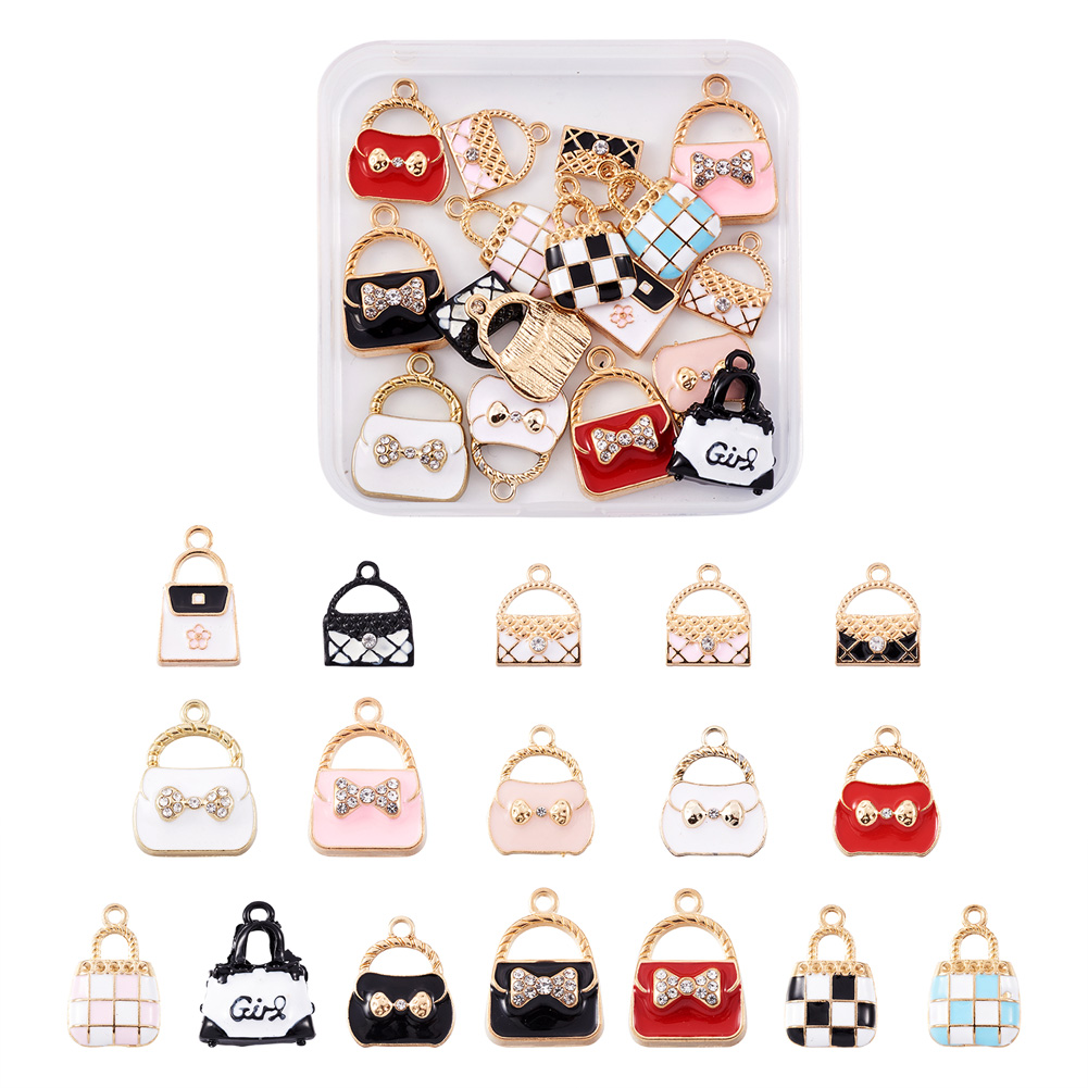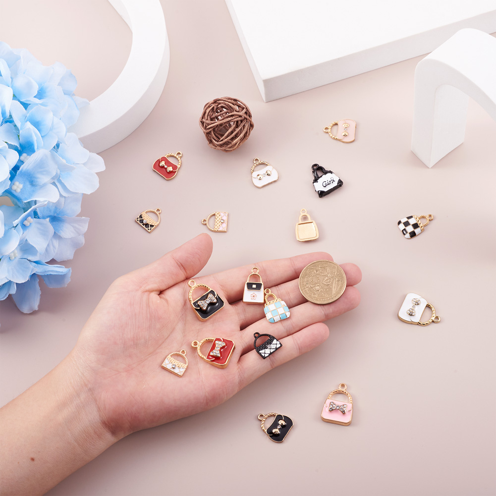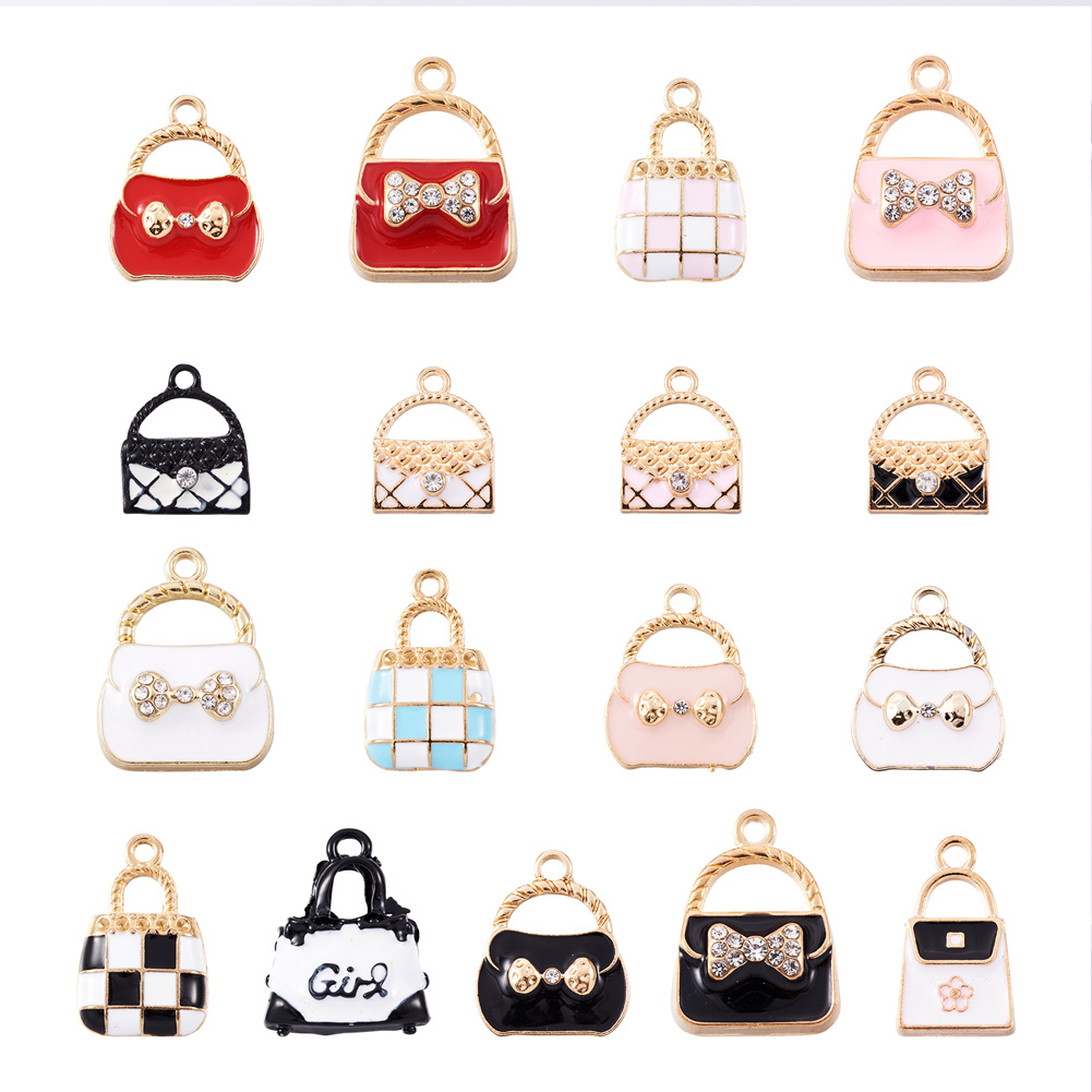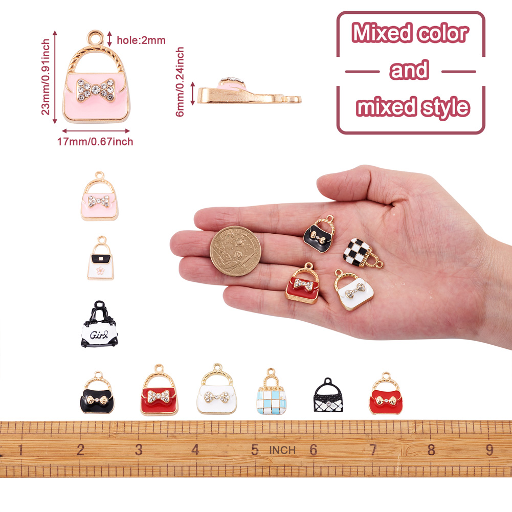 34pc Handbag Alloy Enamel Pendants with Crystal Rhinestone Cute Charms 15~23.5mm