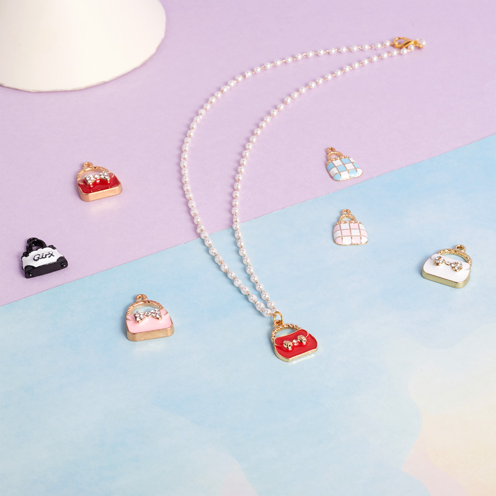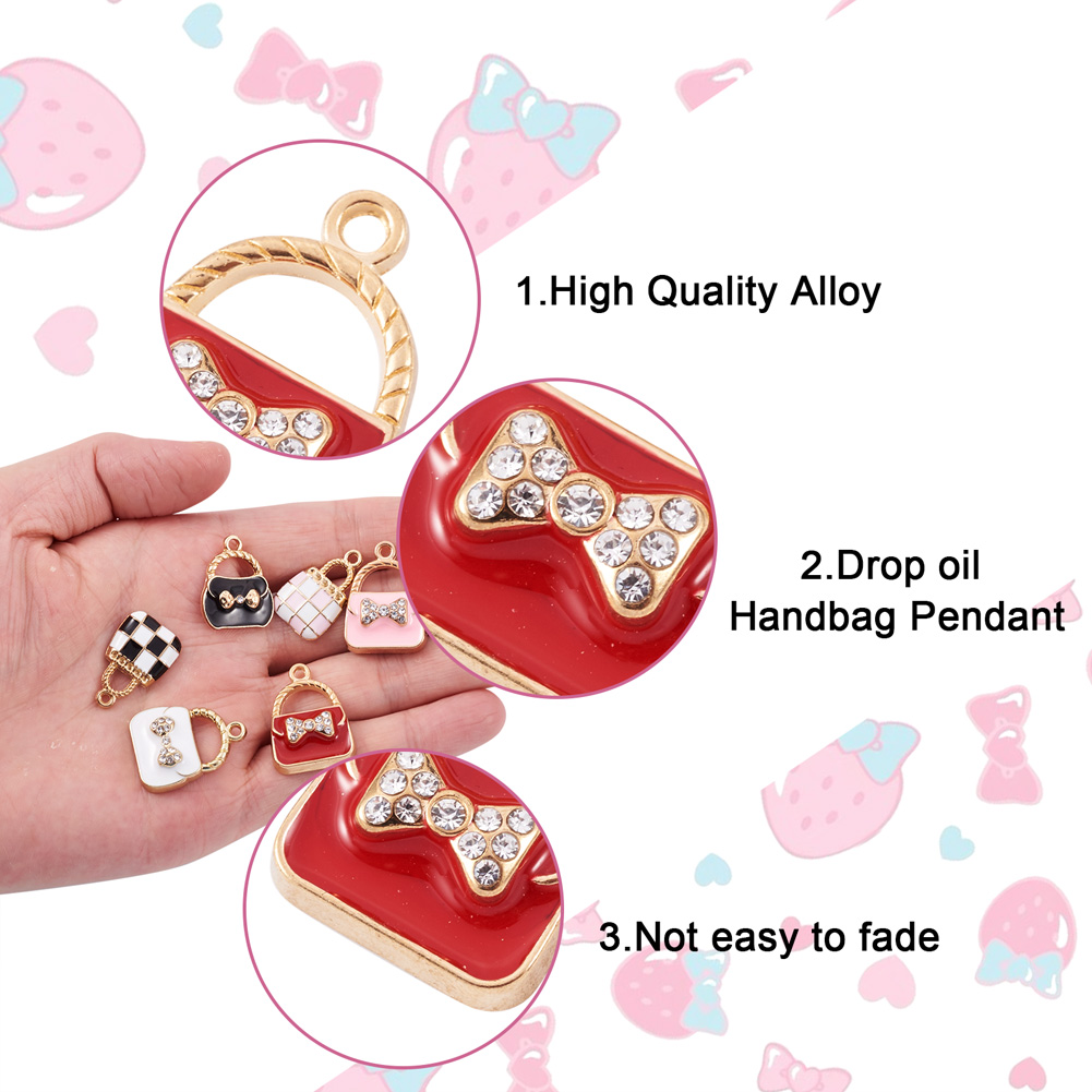 Alloy Enamel Pendants, with Crystal Rhinestone, Handbag, Metal Dangle Charms.