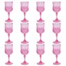 Cheers to pink! With a gorgeous color and elegant design, these Pink Patterned Plastic Wine Glasses will be the toast of the party. The durable plastic wine glasses offer the look of cut crystal with the convenience of being disposable. You get a dozen glasses in the set. Not just available in pink, find other colored wine glasses on our site to match your party's color scheme. br