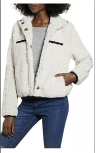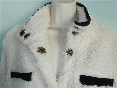 Description : Step out day or night in this stylish fluffy fleece jacket. Snap closer. Chest and side pockets. Long sleeves. Fully lined. It's a beautiful layering piece. Wear it to work / school or on the weekend with nice pair of jeans -- you will always look classy and stylish.