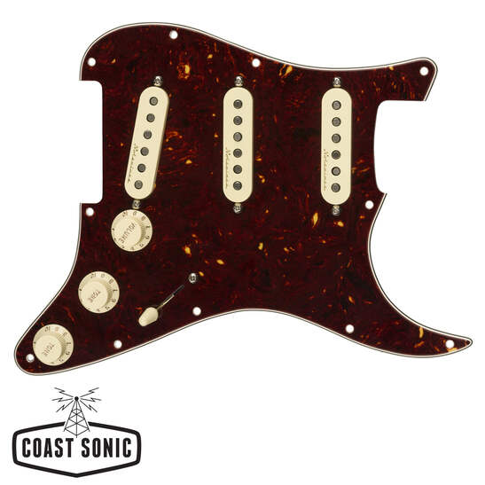 Customize your tone with the Pre-Wired Stratocaster pickguards. Made with premium components in the same factory as our iconic guitars, this drop-in pickguard is easy to install. Simply remove your old guard, solder the output jack and ground wires, screw in the new guard and you’re ready to rock with pure Fender sound