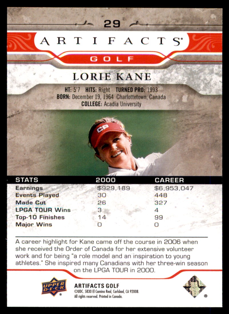 | 2021 Upper Deck Artifacts Red 118/249 29 Lorie Kane |