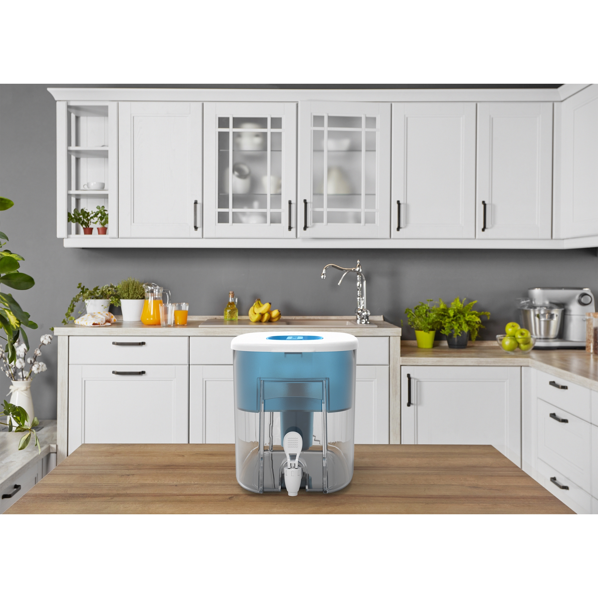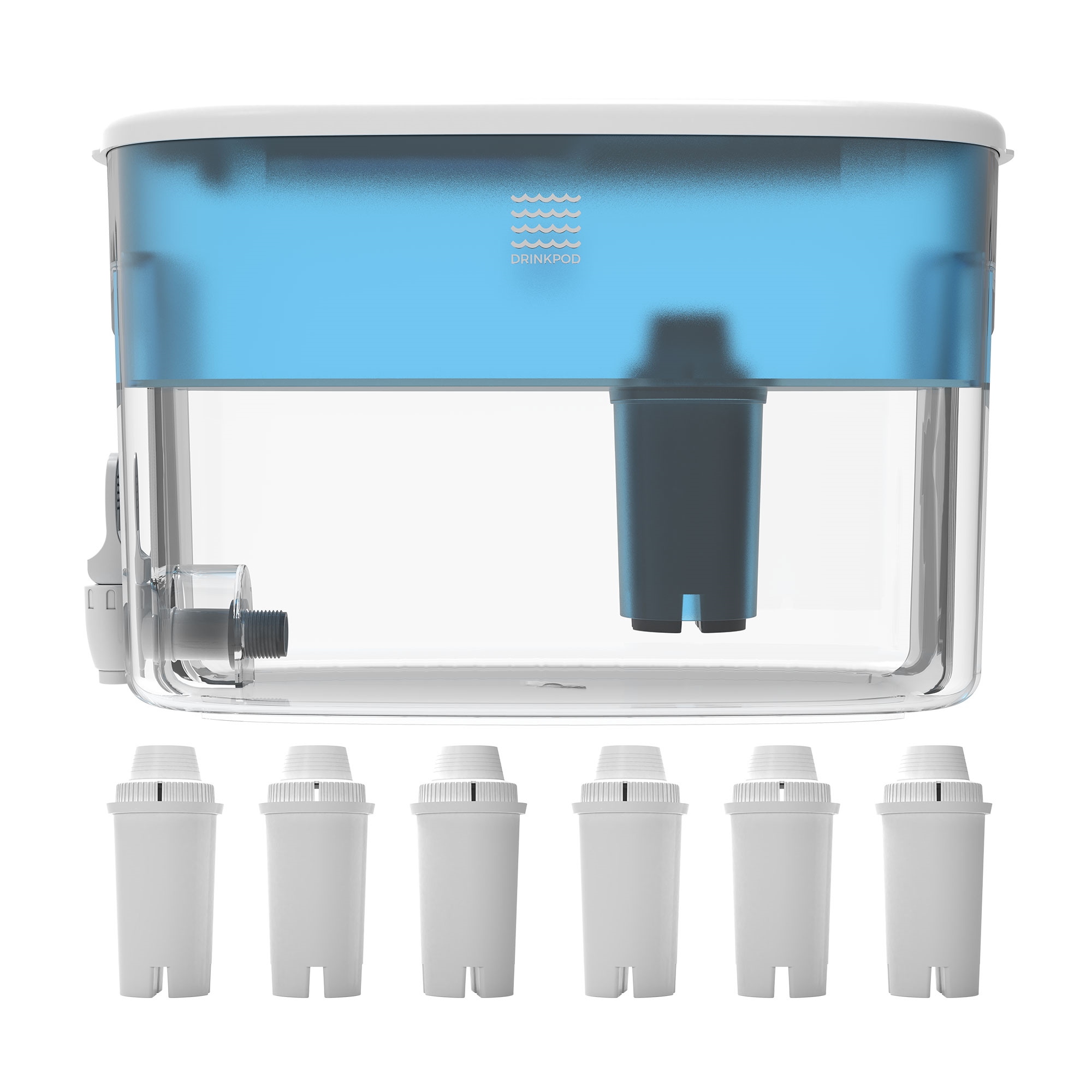 The extra large capacity makes this water filtration system perfect for busy families, sports teams and offices, while a new, sleek, space efficient design allows for convenient storage. A flip top lid makes refilling a breeze. This filtered water dispenser comes with 6 water filters and delivers great tasting water in every pour. The Drinkpod Alkaline Water Dispenser balances your pH level and boosts alkalinity while removing harmful contaminants and making your water antioxidant-rich.