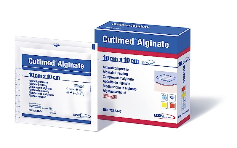 Is a calcium sodium alginate (80% calcium and 20% sodium) made out of natural seaweed. The alginate component enables the dressing to absorb up to 20 times its own weight in exudate. Cutimed Alginate offers a broad performance spectrum, but is particularly useful for moderate to heavily exuding wounds, shallow wounds, lesions with rough edges, or deeper sites that are hard to dress.