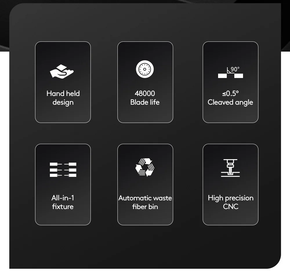 Typical Blade Life | Total 48,000 fiber cleaves (replaceable) |