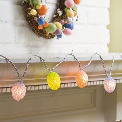 Egg Light String. Add some glow to your Easter event with this string of ten 2 1/2" pink, purple and green egg-shaped plastic lights. They're a fun way to decorate a room, window, buffet or Easter party table with color and light. 8 ft. Light set does not interconnect. UL listed. For indoor or outdoor use.
