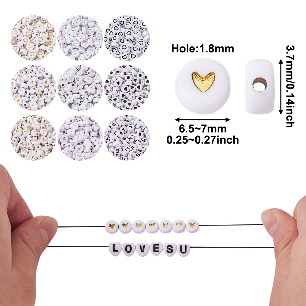 Color:Mixed Color Size: Heart with Silver Random Letters: about 6.5x7x4mm, hole: 1.6mm, about 72g, about 500pcs; Heart with Mixed Golden Letters: about 7x7x4mm, hole: 1.5mm, about 83g, about 500pcs; Heart with Letter: about 7x7x4mm, hole: 1mm, about 83g, about 500pcs; Flat Round with Heart: about 7x4mm, hole: 1.5mm, about 14g, about 100pcs; Flat Round with Silver Heart: about 7x3.5mm, hole: 1.5mm, about 14g, about 100pcs; Flat Round with Heart: about 7x3.5mm, hole: 1.2mm, about 14g, about 100pcs; Flat Round with Heart: about 6.5~7x3.7mm, hole: 1.8mm, about 14g, about 100pcs; Flat Round with Heart: about 6.5~7x3.7mm, hole: 1.8mm, about 14g, about 100pcs; Flat Round with Heart Pattern: about 7x7x3.5mm, hole: 1.8mm, about 14g, about 100pcs. 【Wide Usage】: These Acrylic pony Beads can be used for garment findings, beaded curtains decoration, home decoration and other event decoration. Popular for jewelry accessories like necklaces, bracelets and earrings etc. You will love these colorful, lightweight beads. 【Wonderful Gift】: Enjoy the fun of DIY handmade jewelry and make jewelry gifts for any one you love to express your best wishes with these beads. It's great idea to make jewelry, friendship bracelet as gifts. Package Include 2100pcs Beads |