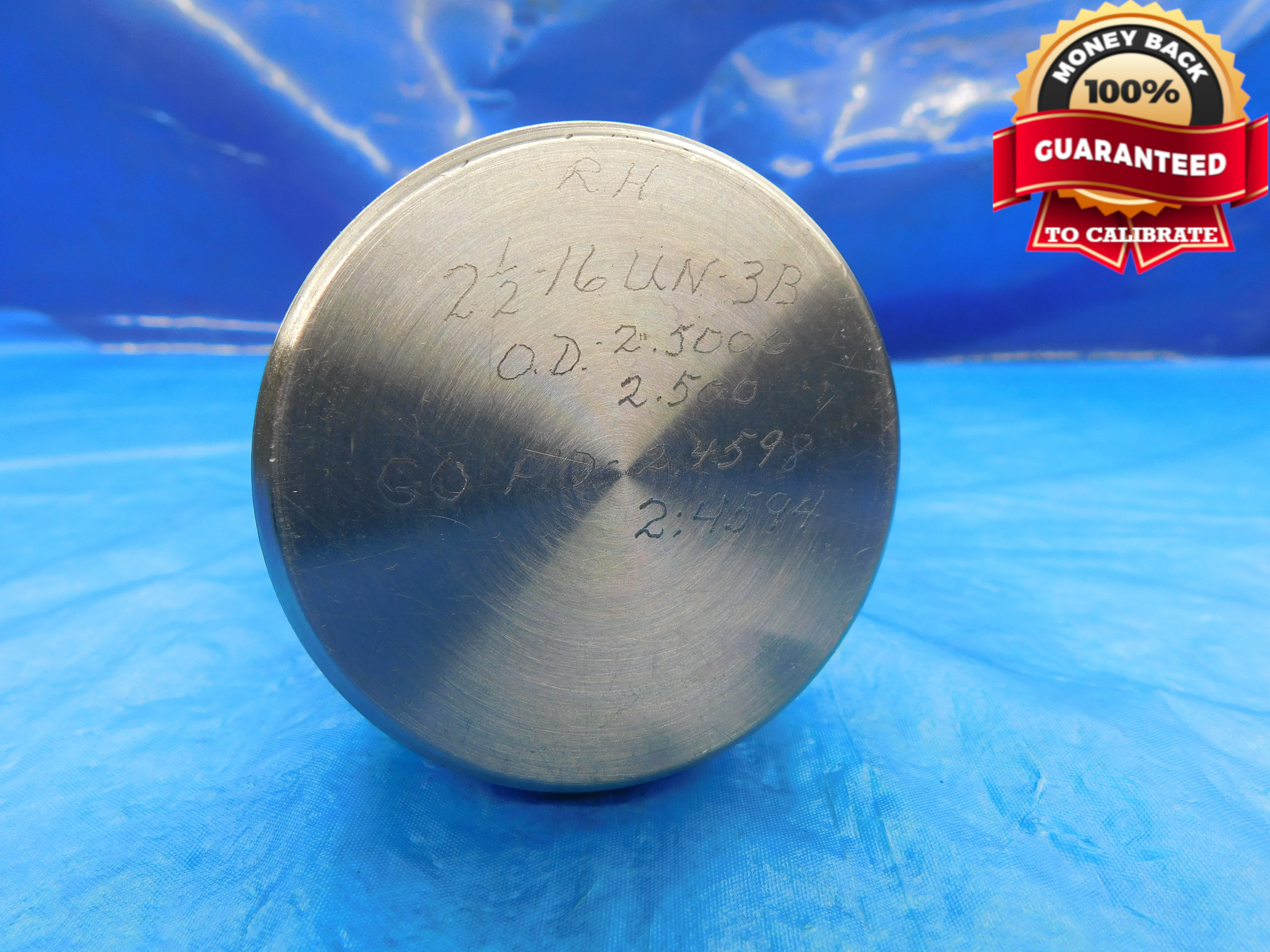 SHOP MADE 2 1/2 16 UN 3B THREAD PLUG GAGE 2.5 GO ONLY P.D. = 2.4594 3B OR 2B