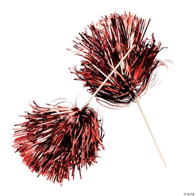 Show off school spirit and cheer on the team with these eye-catching pom-poms featuring a metallic look. Great for school sporting events, pep rallies or to use during a dance or cheer routine, these pom-poms help get everyone into the ra-ra spirit! Each plastic pom-pom has a plastic handle. Plastic. (2 dozen per unit) Poms, 12"; handle, 3 1/2" x 5".