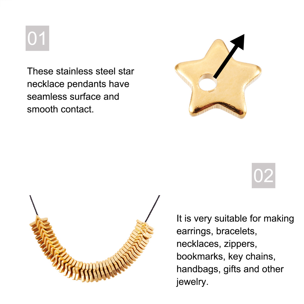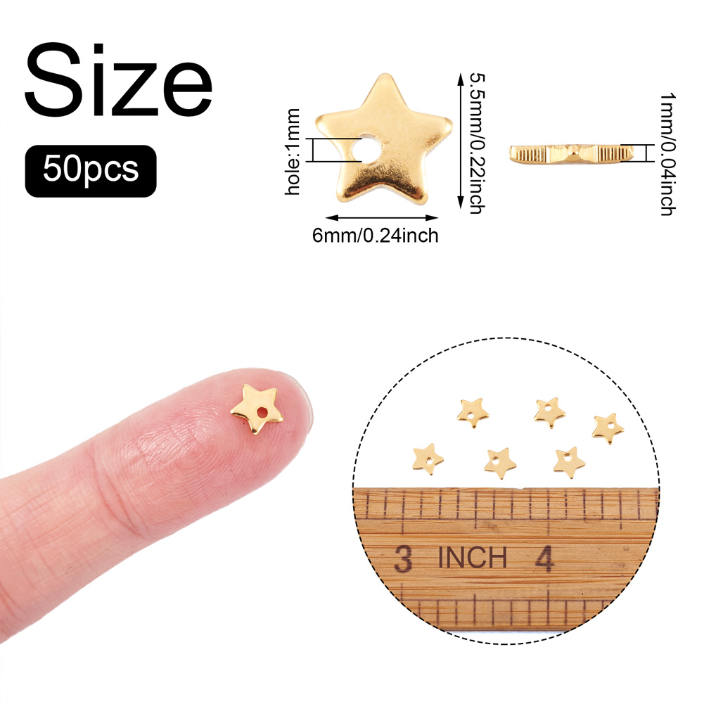 50pcs Golden 304 Stainless Steel Star Charms Mini Smooth Metal Charms 6.5x5mm