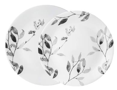 Some of the gray leaves are darker, as if bathed in sunlight. Others are shadowy wisps of gray, as if viewed through a fine mist. While the pattern is undeniably delicate, the dinnerware itself is sturdy enough for everyday use.