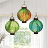 Throwing a luau or tropical beach party. Light up the party with these festive hanging lanterns. Each round paper light comes in a fun and festive color to match any Hawaiian party decor. Paper. (3 pcs per set) 8" Requires 2 AAA batteries not included.