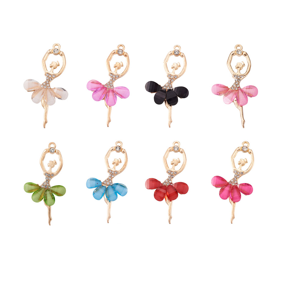 Alloy Big Pendants, with Resin & Crystal Rhinestone, Faceted, Ballerina, Metal Dangle Charms.
