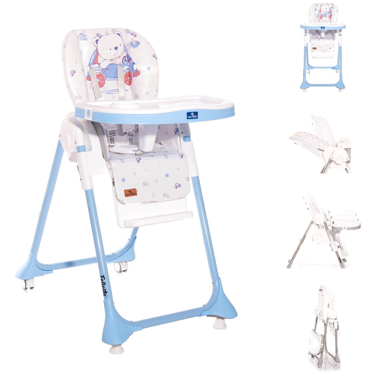 Besonderheiten Artikel Lorelli Kinderhochstuhl Felicita, faltbar, verstellbar, 5-Punkt-Gurt, 2 Räder: