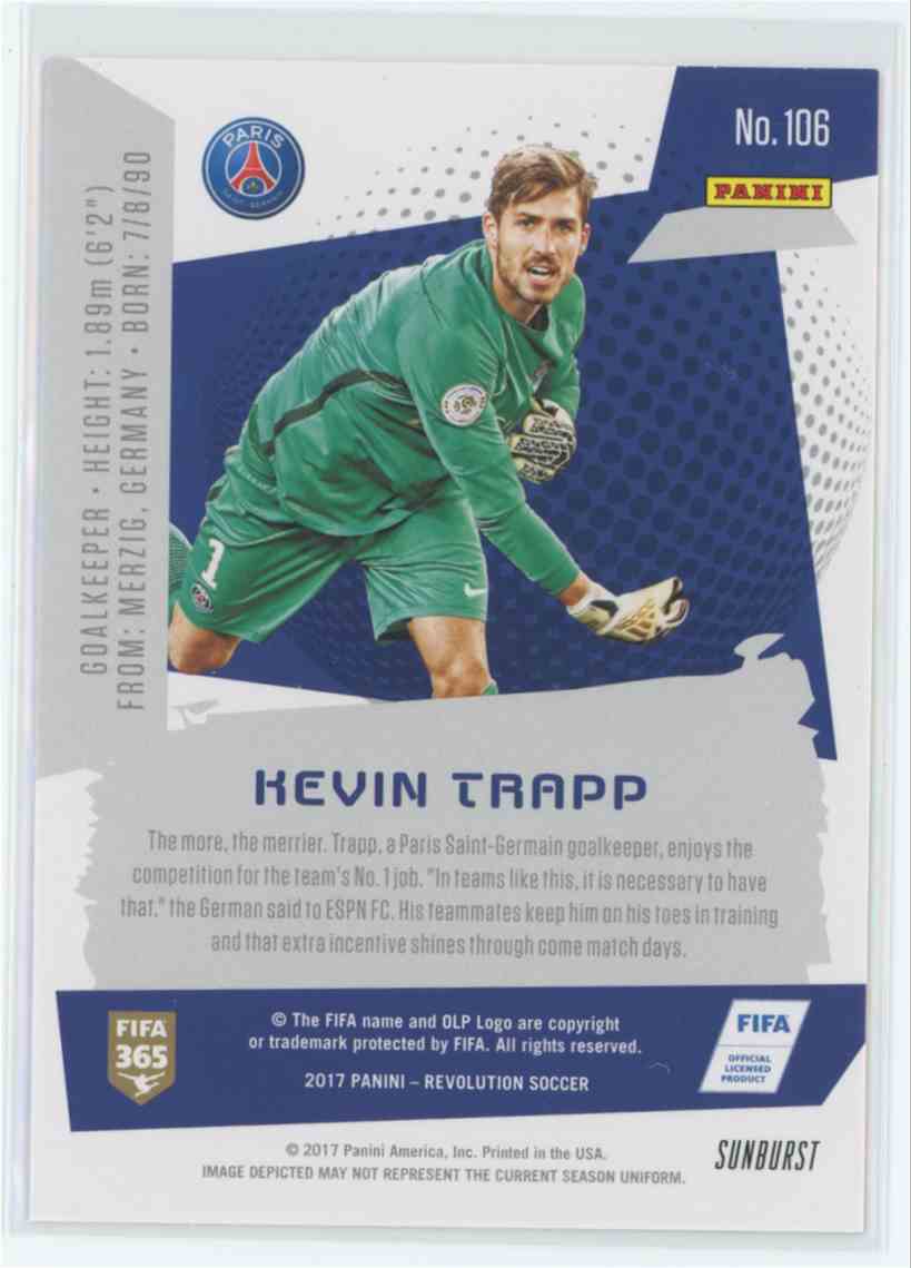| 2017 Panini Revolution Soccer 106 Kevin Trapp Sunburst Parallel |