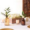 These Amber Bud Vases look just like classic medicine bottles! The amber hue provides a lovely vintage feel for wedding reception tables and centerpieces throughout your wedding space. Once the wedding is over you can incorporate them into your home decor! Glass. (6 pcs. per unit) 4" x 2 1/4" diam.