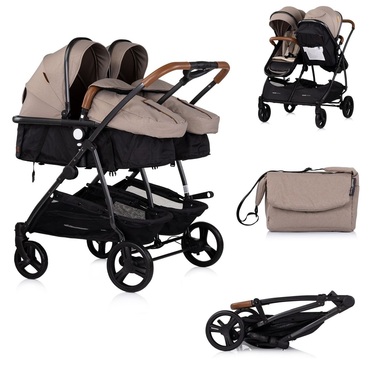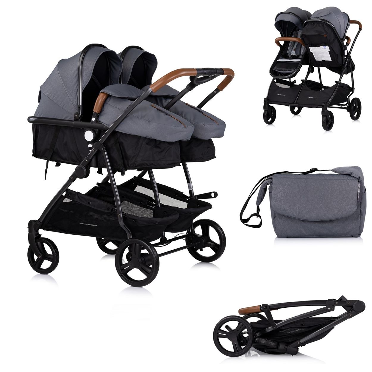 Der Geschwisterkinderwagen Duo Smart von Chipolino ist mit einer Hand zusammenklappbar, Aufsätze können in- oder gegen die Fahrtrichtung montiert werden, auch getrennt voneinander. Beide Sitze sind in Tragetaschen verwandelbar und somit von Zwillingen oder Geschwistern unterschiedlichen Alters gleichermaßen nutzbar.