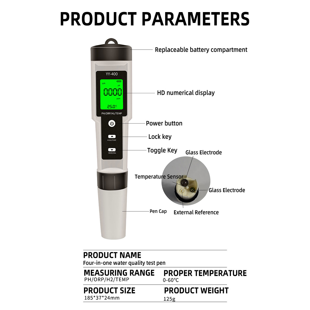 A model without battery and without powder 4-in-1 YY-400 water quality pen*1+instruction manual*1