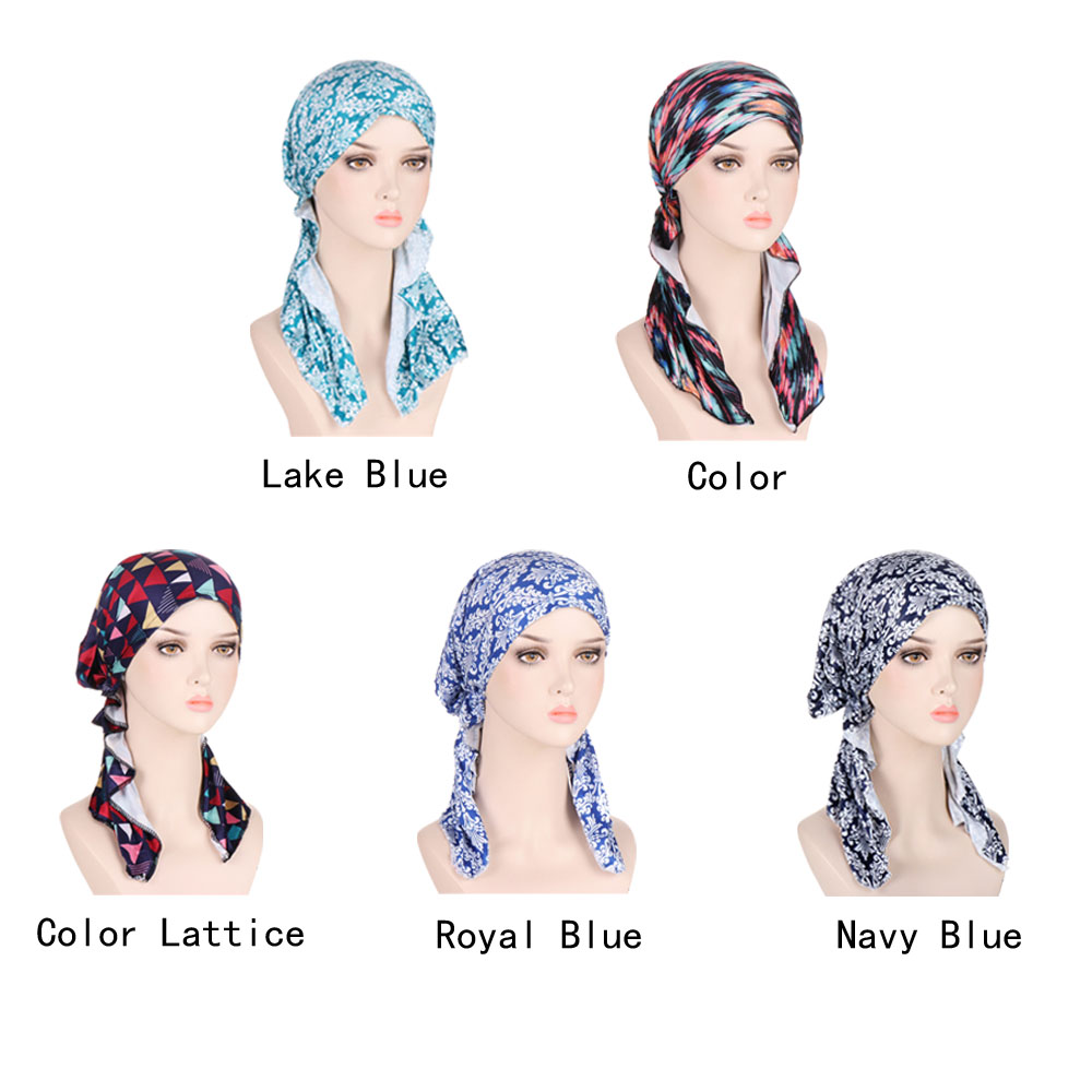 Muslim Hijab Turban Hat Headscarf Pre-Tied Long Tail Chemo Cap Stretch Bandana