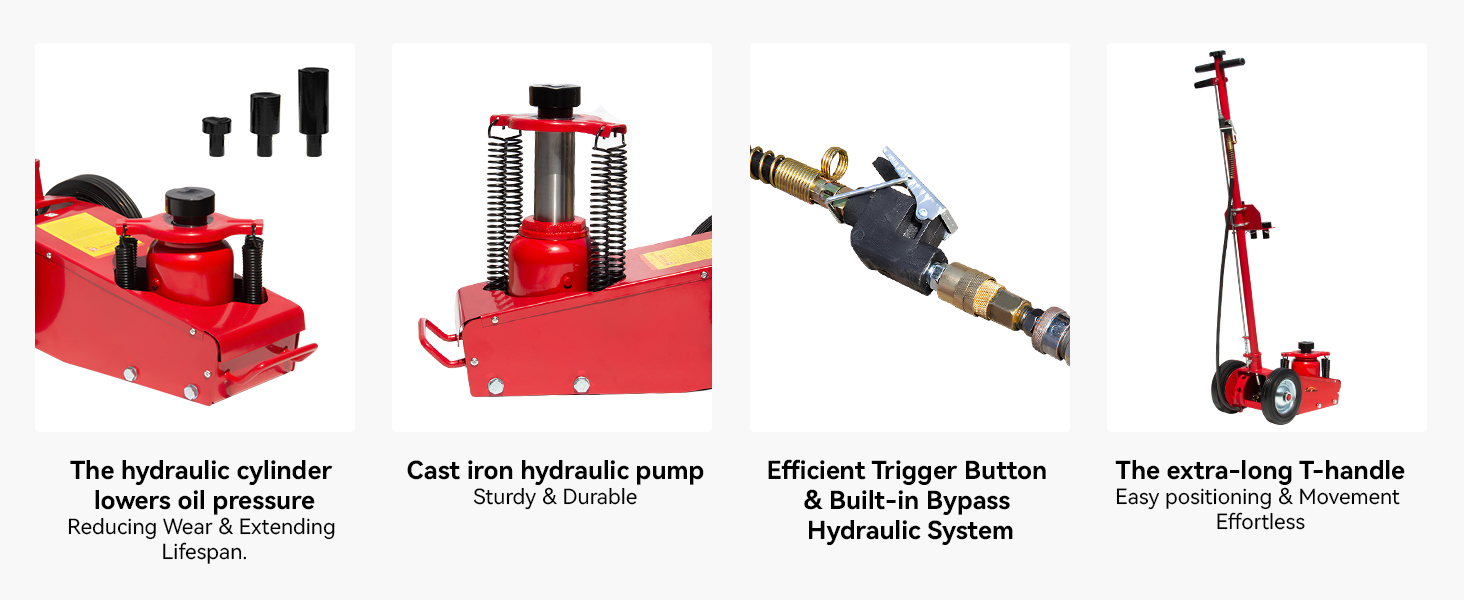 Heavy-Duty steel construction with a sturdy handle and chrome-plated ram make payload capability ups to 22 tons. Sprayed paint to resist rust & corrosion, adds extra durability. Suitable for home or business applications
