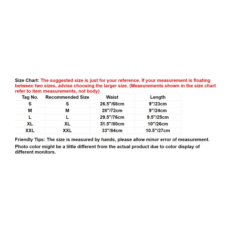 Friendly Tips: The size is measured by hands, please allow minor error of measurement. Photo color might be a little different from the actual product due to color display of different monitors.