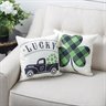 Whether you’re looking for year-round home décor or something fun to set out with your Saint Patrick’s Day decorations, these comfy throw pillows fit the bill. Featuring a plaid shamrock on one pillow and “Lucky” messaging on the other, this set makes a great addition to most any décor theme. Cotton. (2 pcs. per set) 14" x 14" Imported.