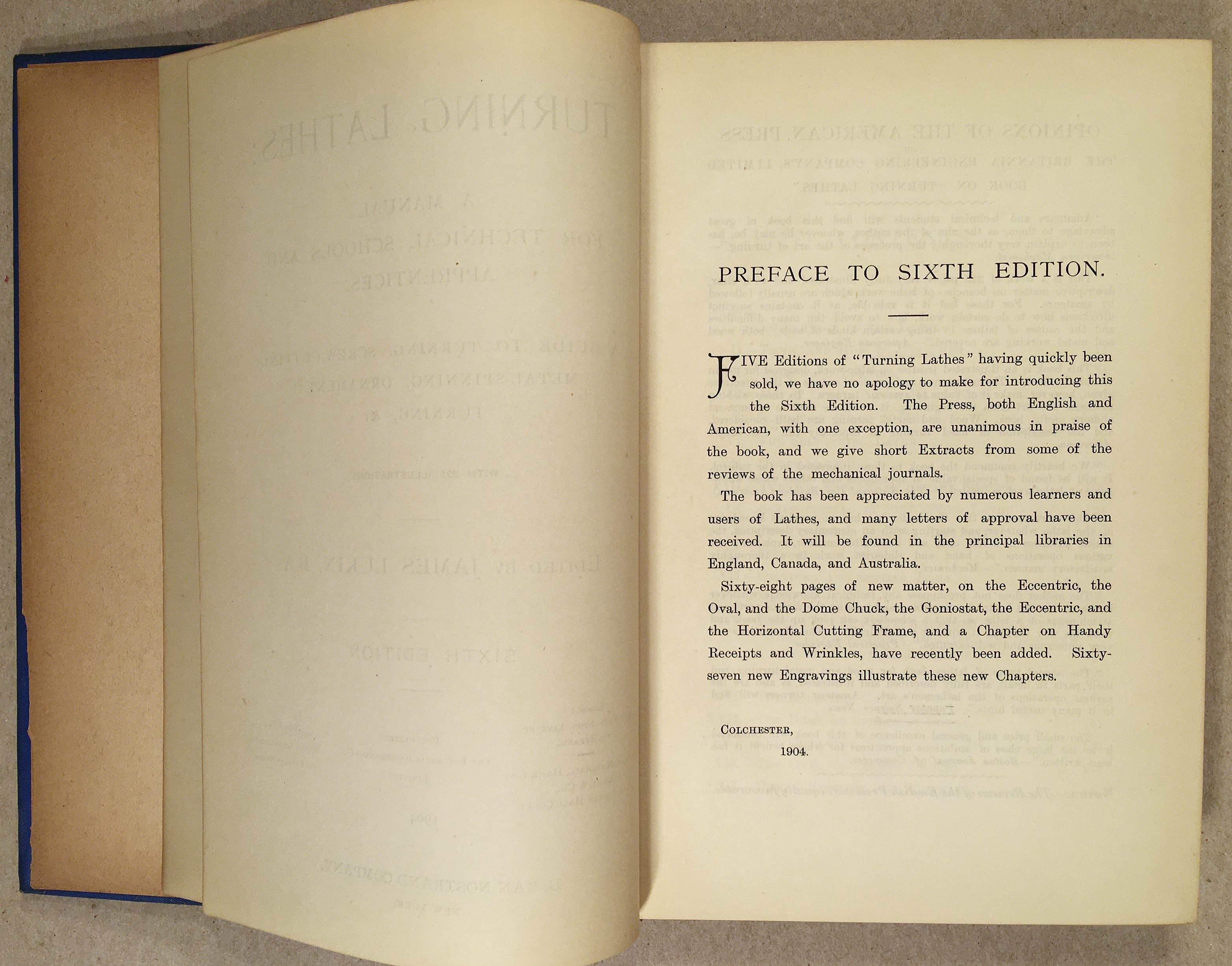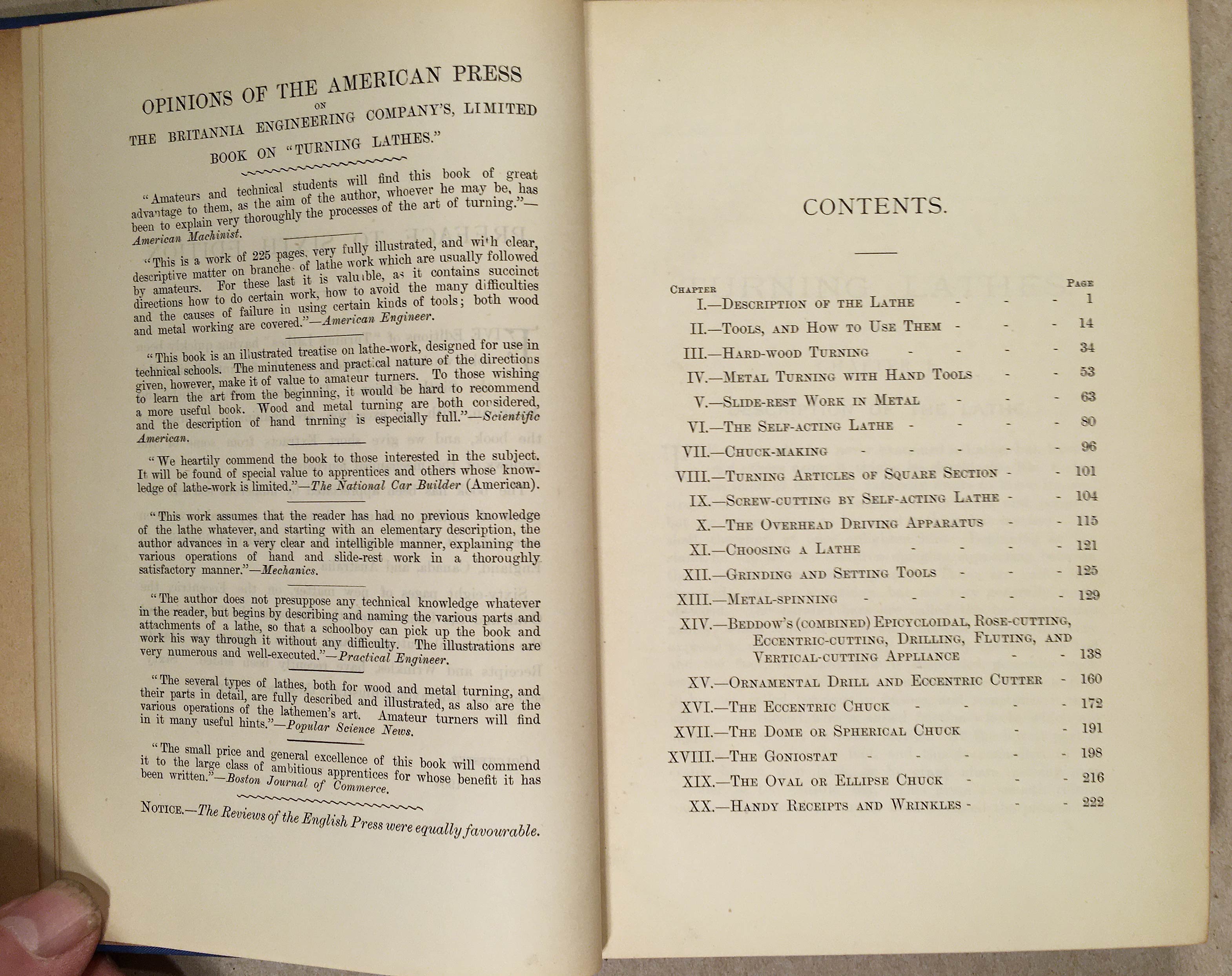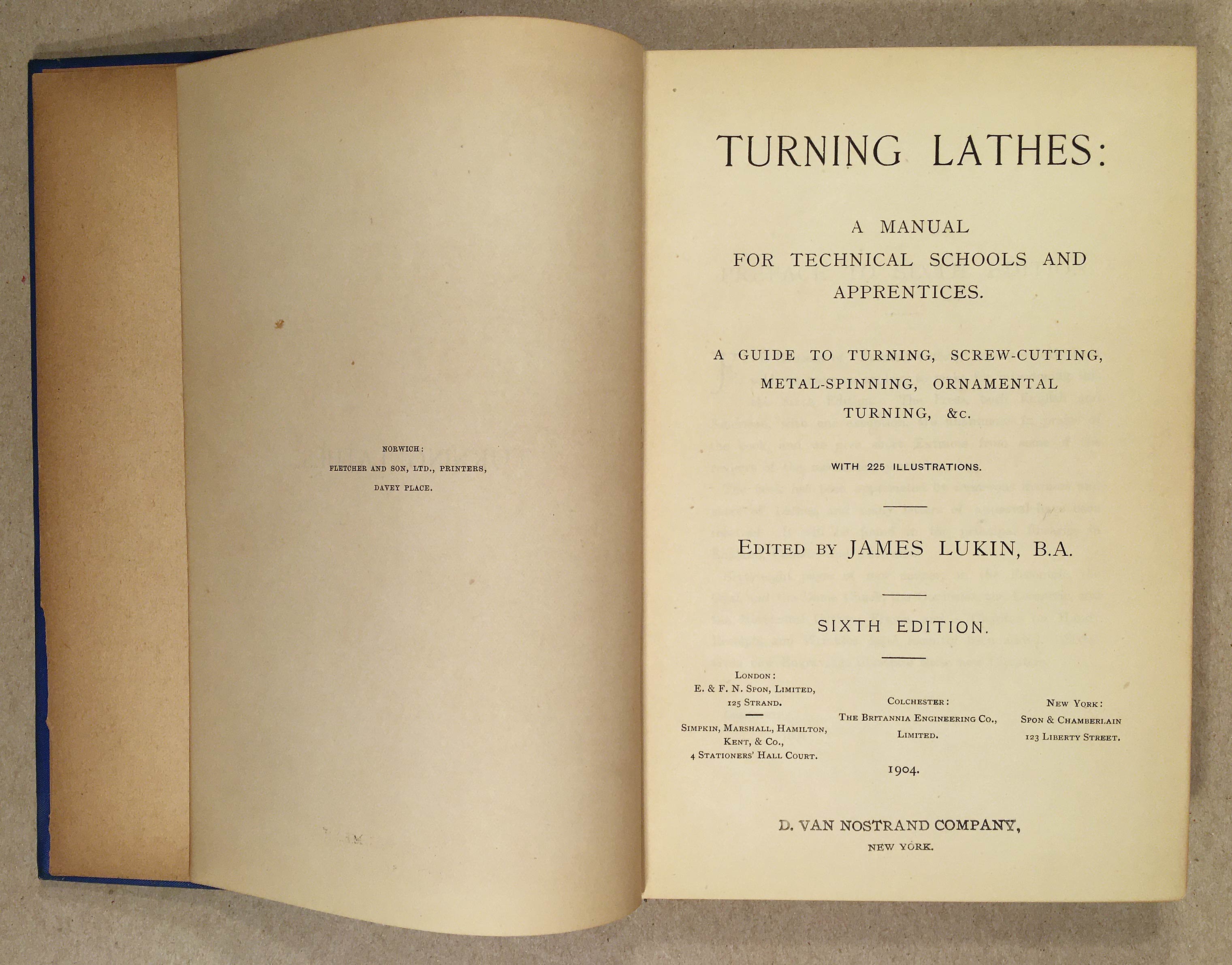 A guide to turning, screw-cutting, metal-spinning, ornamental turning, etc. Sixth Edition. The manual is contained within the first 228 pages, with many illustrations. See the table of contents for what's inside.