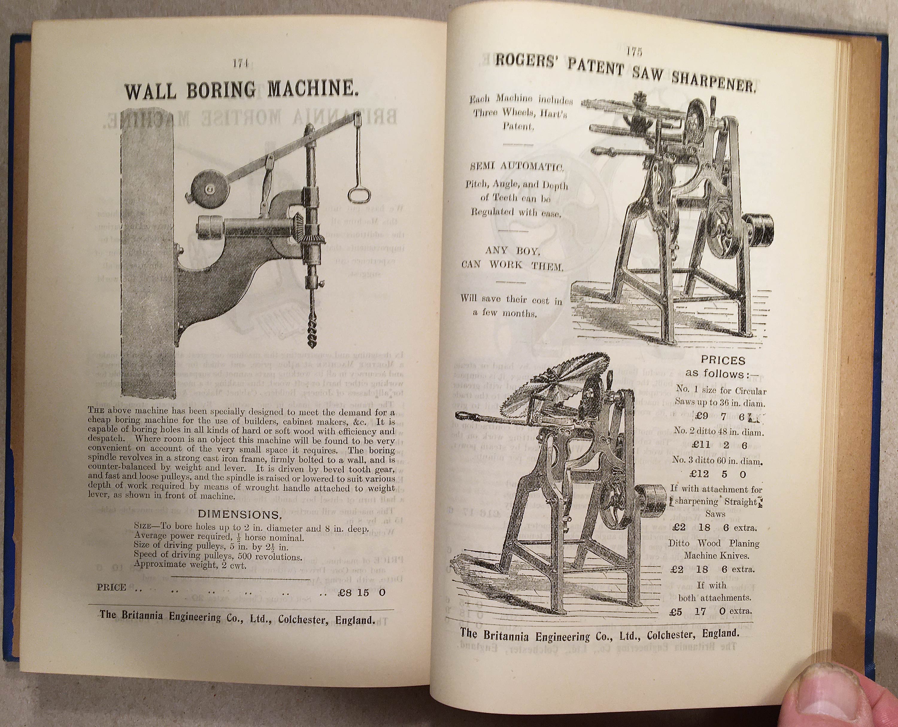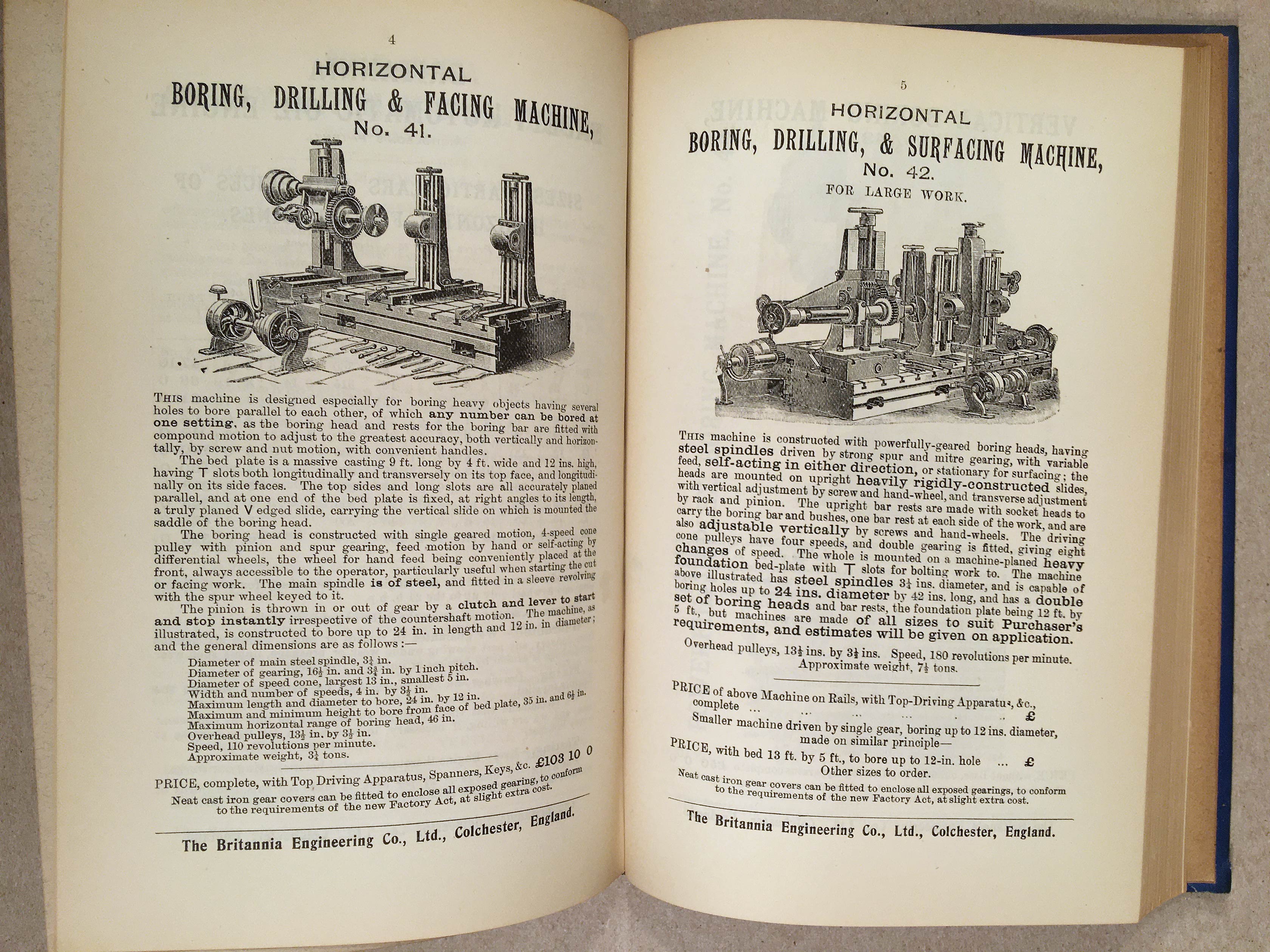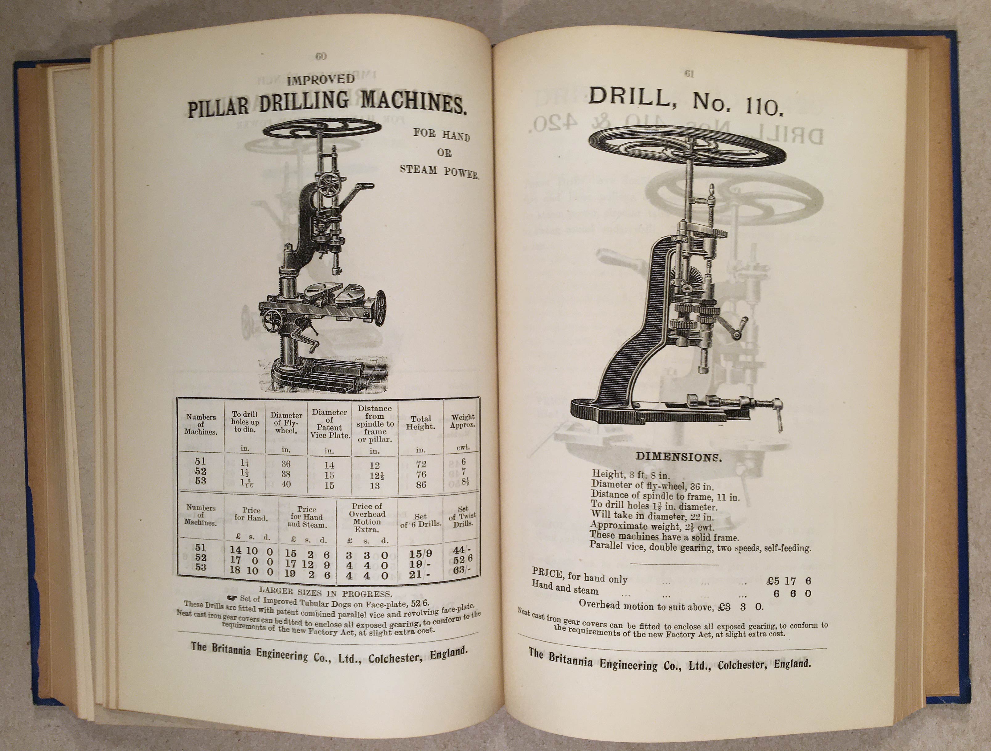 In the second half of this volume, it is followed by the 1905 Catalogue of Engineers' Tools etc. from the Britannia Engineering Co. Ltd. of Colchester, which is 200 numbered pages, fully illustrated. It is assumed the company was a sponsor of the publication.