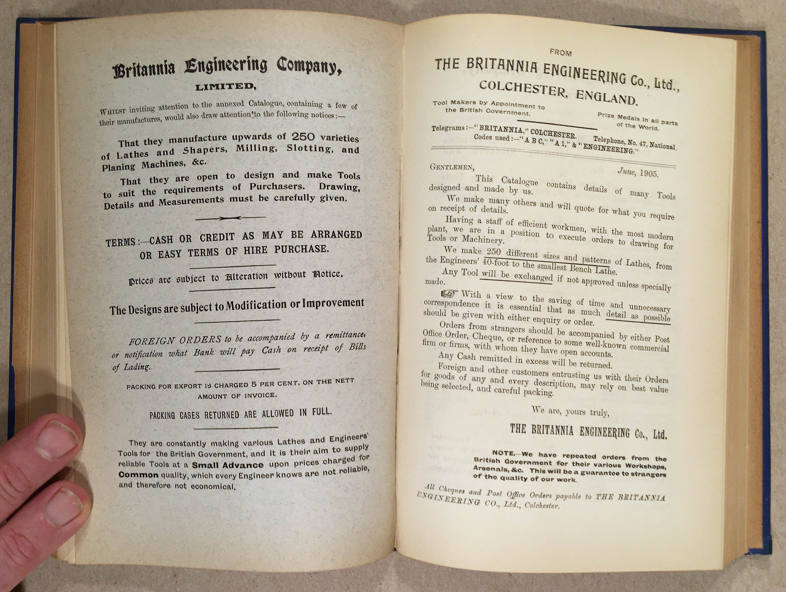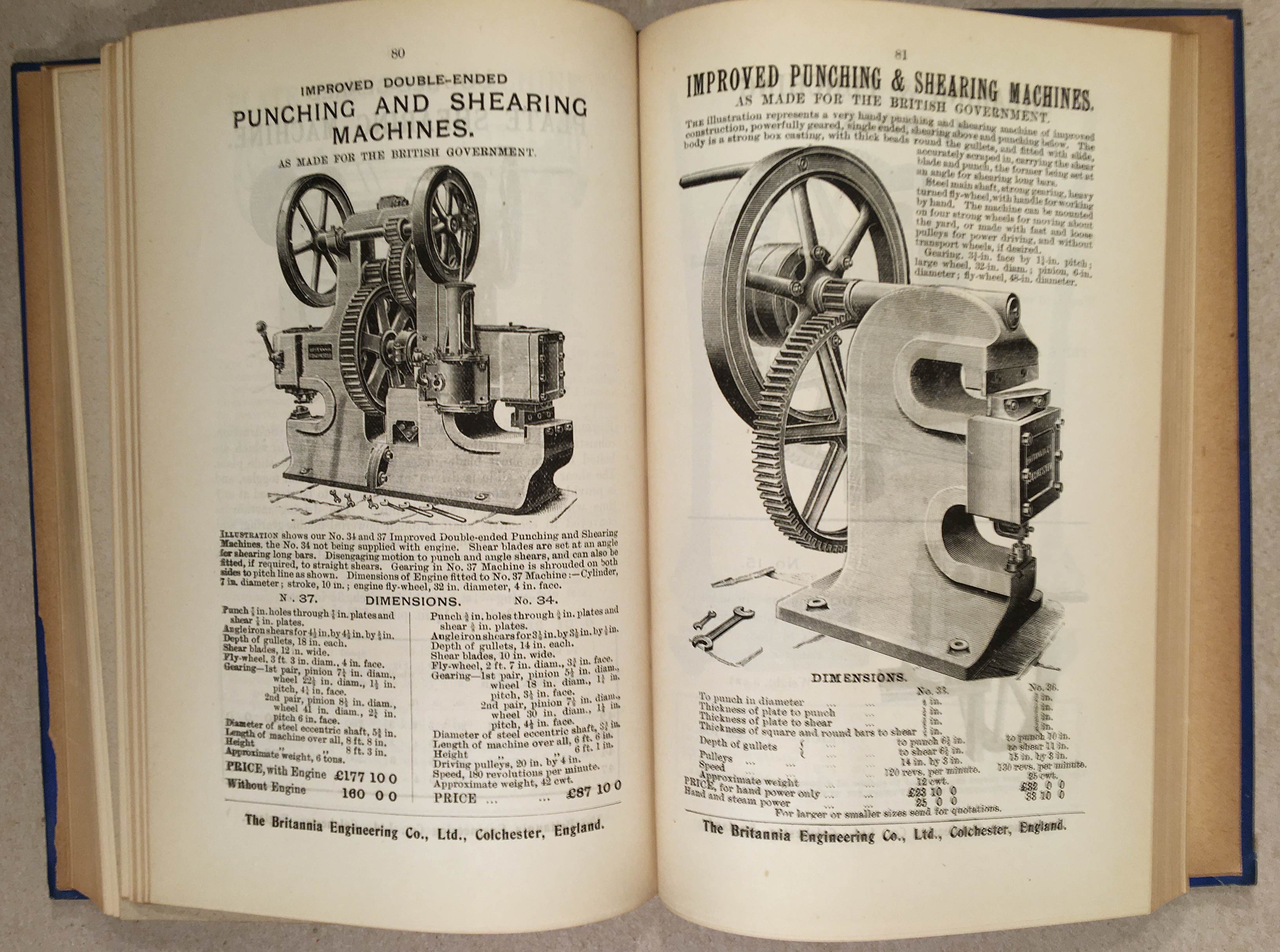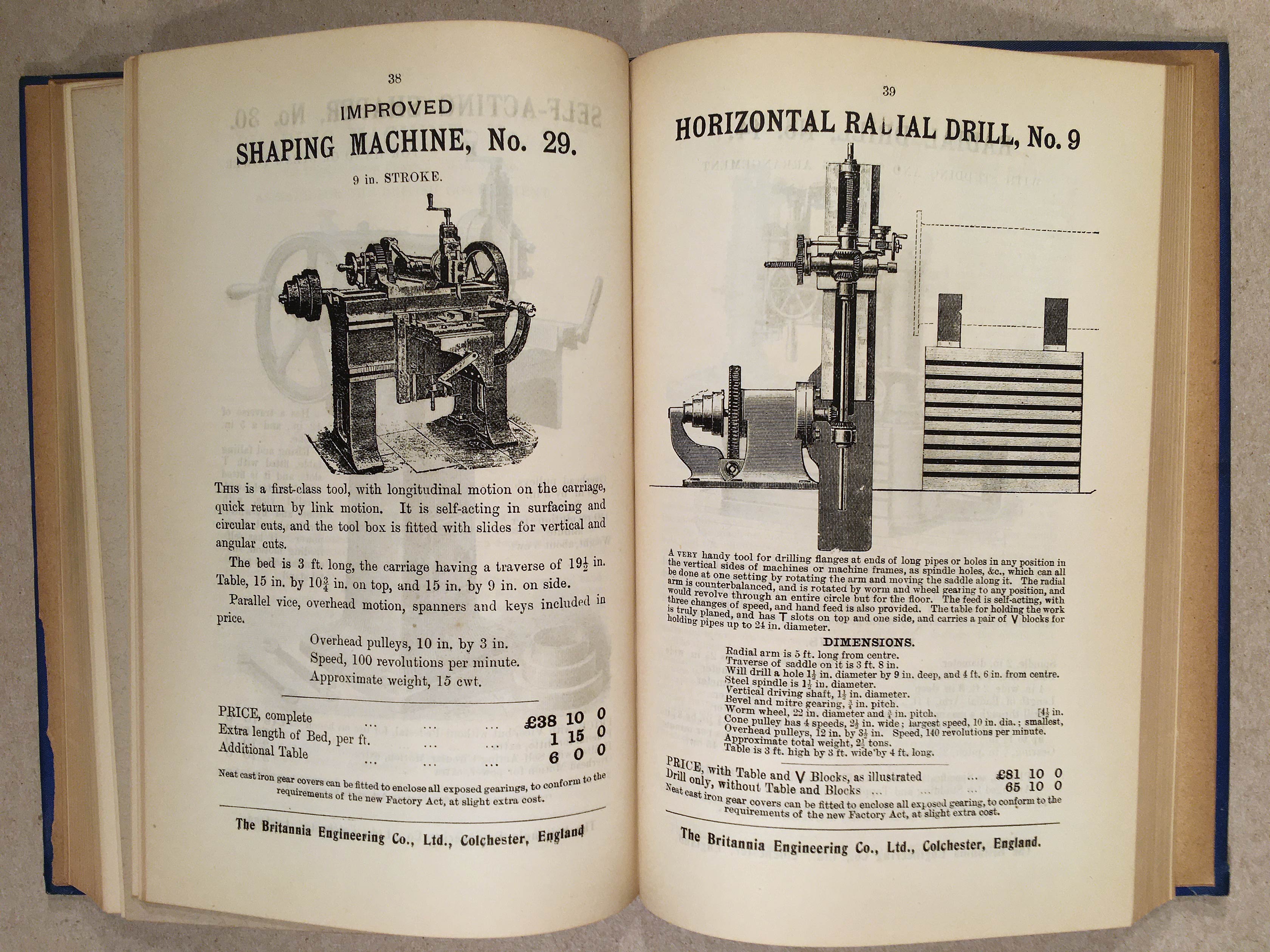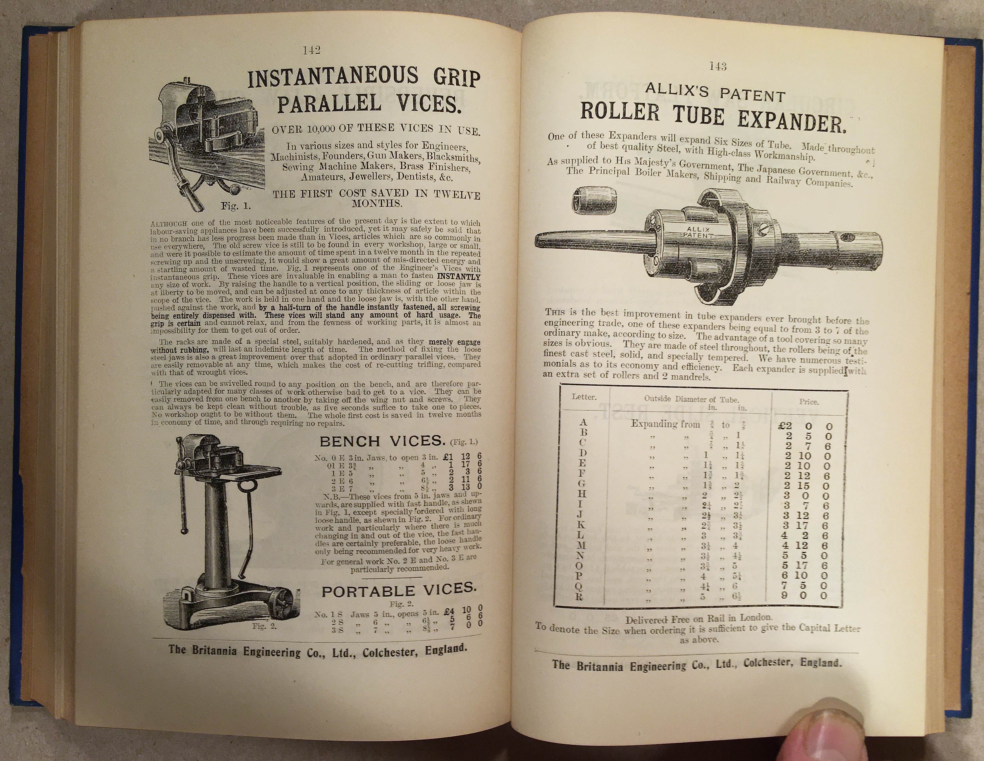 In the second half of this volume, it is followed by the 1905 Catalogue of Engineers' Tools etc. from the Britannia Engineering Co. Ltd. of Colchester, which is 200 numbered pages, fully illustrated. It is assumed the company was a sponsor of the publication.