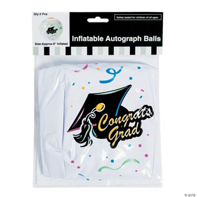Printed with Congrats Grad these beach balls include a graduation cap streamers and confetti design. A fun way for graduates to collect signatures. Ask each guest to sign their name. Vinyl. Inflated 11. We recommend using permanent markers sold separately online.