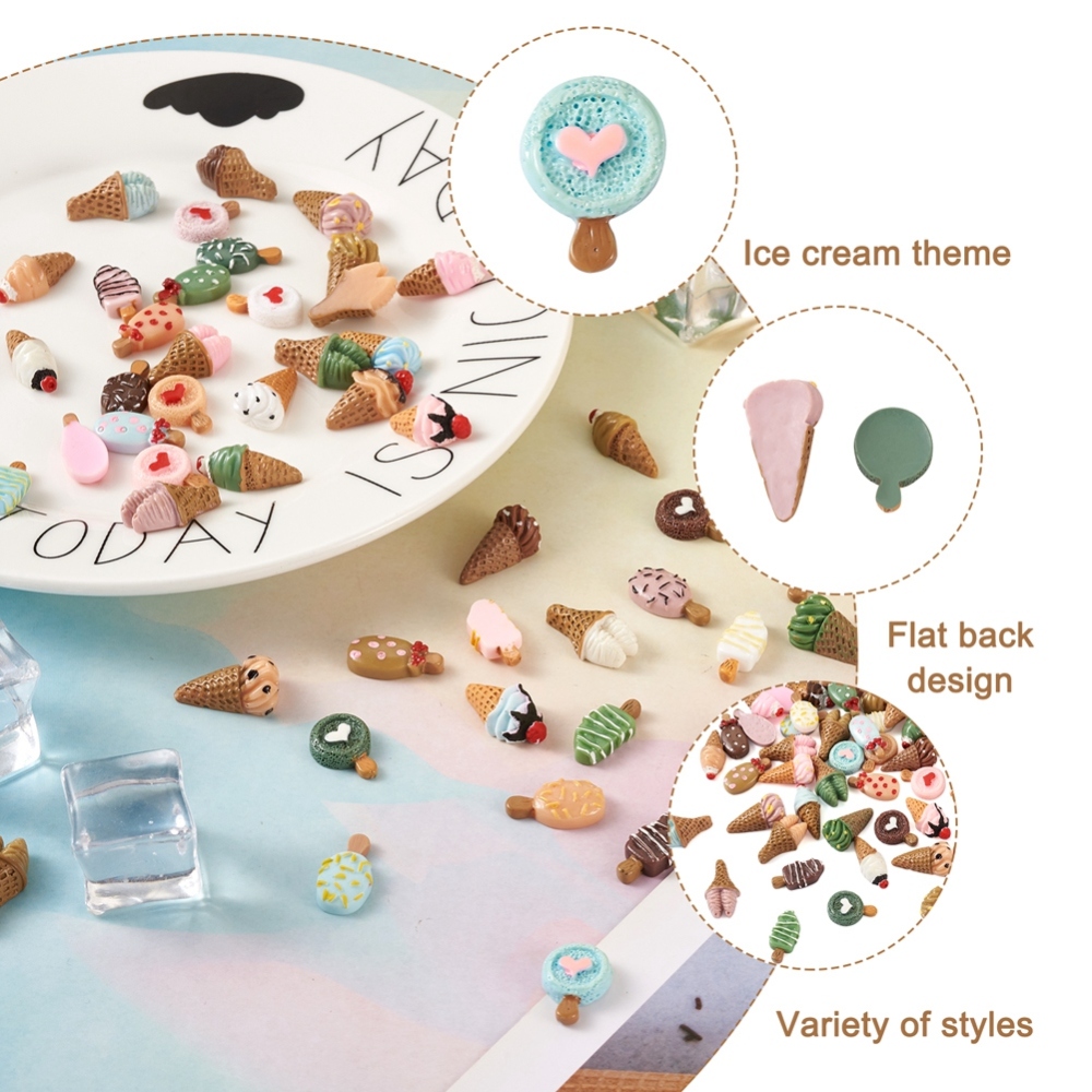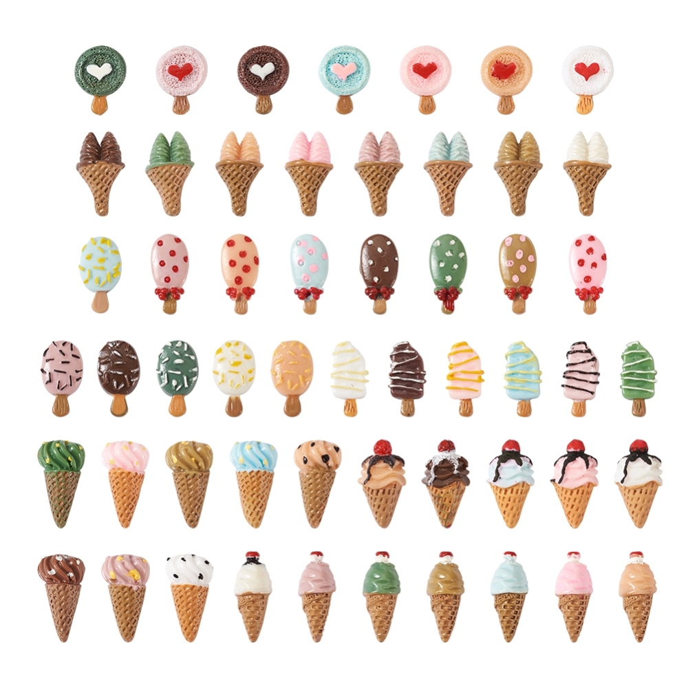 Color:Mixed Color Size: Ice Lolly: 16.5x8x4mm, 6 colors, 1pc/color, 6pcs; Ice Cream Cone: 19x10.5x8.5mm, 8 colors, 1pc/color, 8pcs; Ice Cream Cone: 19x8x7mm, 7 colors, 1pc/color, 7pcs; Ice Lolly: 16x9x4mm, 6 colors, 1pc/color, 6pcs; Ice Lolly: 17x8.5x5mm, 7 colors, 1pc/color, 7pcs; Ice Lolly with Heart: 15x11x3.5mm, 7 colors, 1pc/color, 7pcs; Ice Cream Cone: 18x10.5x7.5mm, 8 colors, 1pc/color, 8pcs; Ice Cream Cone: 19x10x6.5mm, 5 colors, 1pc/color, 5pcs; Widely Applied: Highly recommended to make various projects, such as hair clips, hairpins, scrapbooking, phone case, bag, photo frame, stationery boxes, sewing, clothing decor and so on. Package Include 54pcs Cabochons (54 style,1pcs/style) |