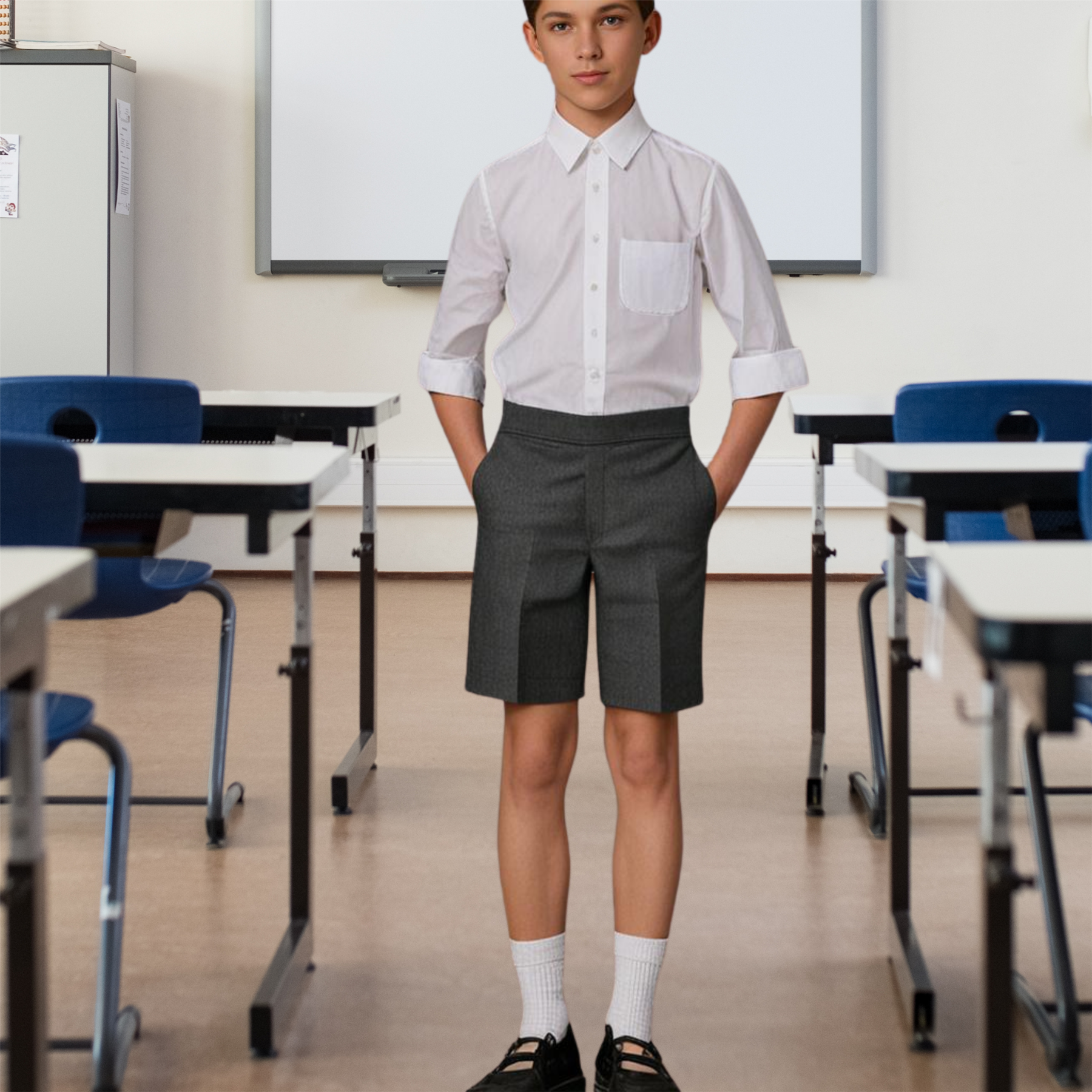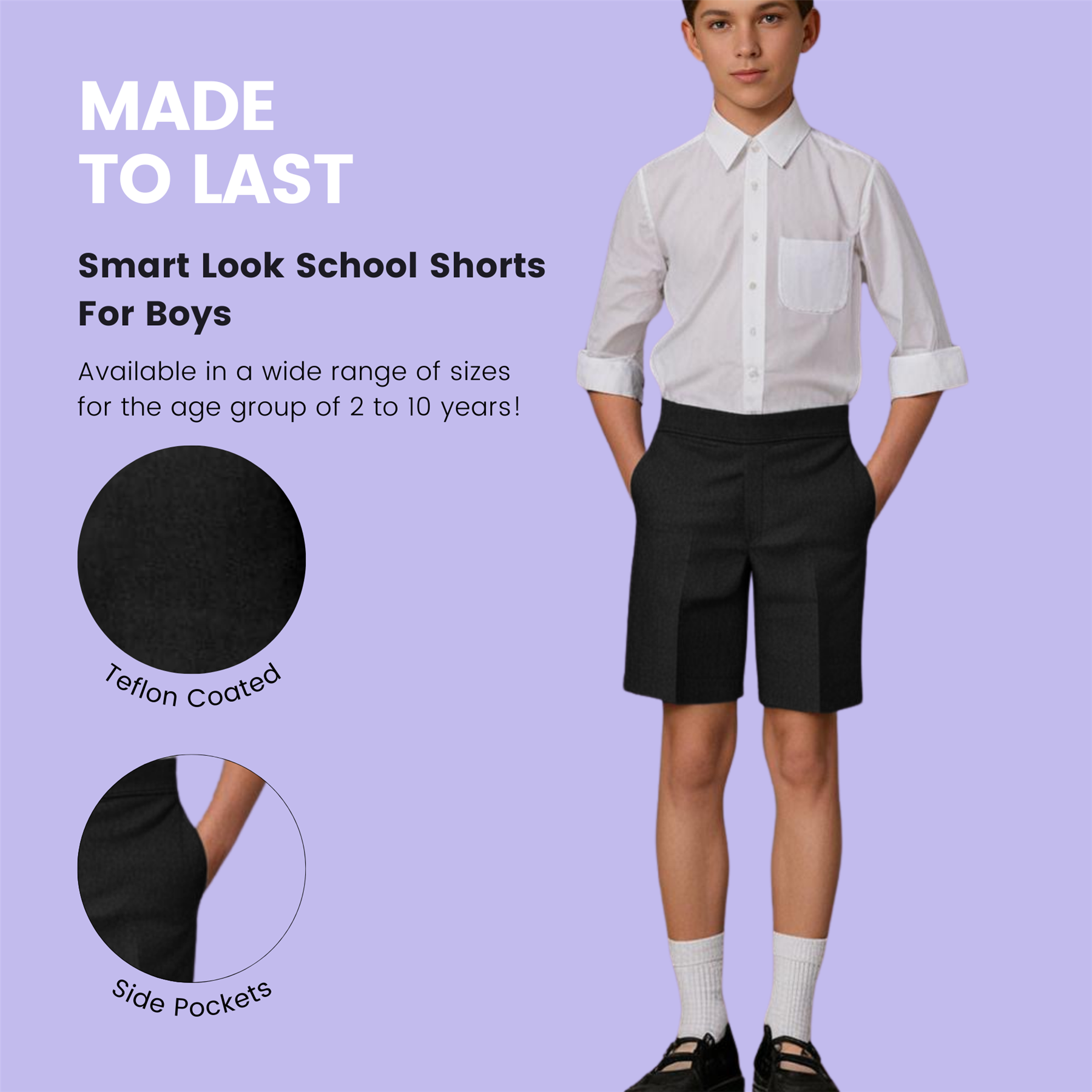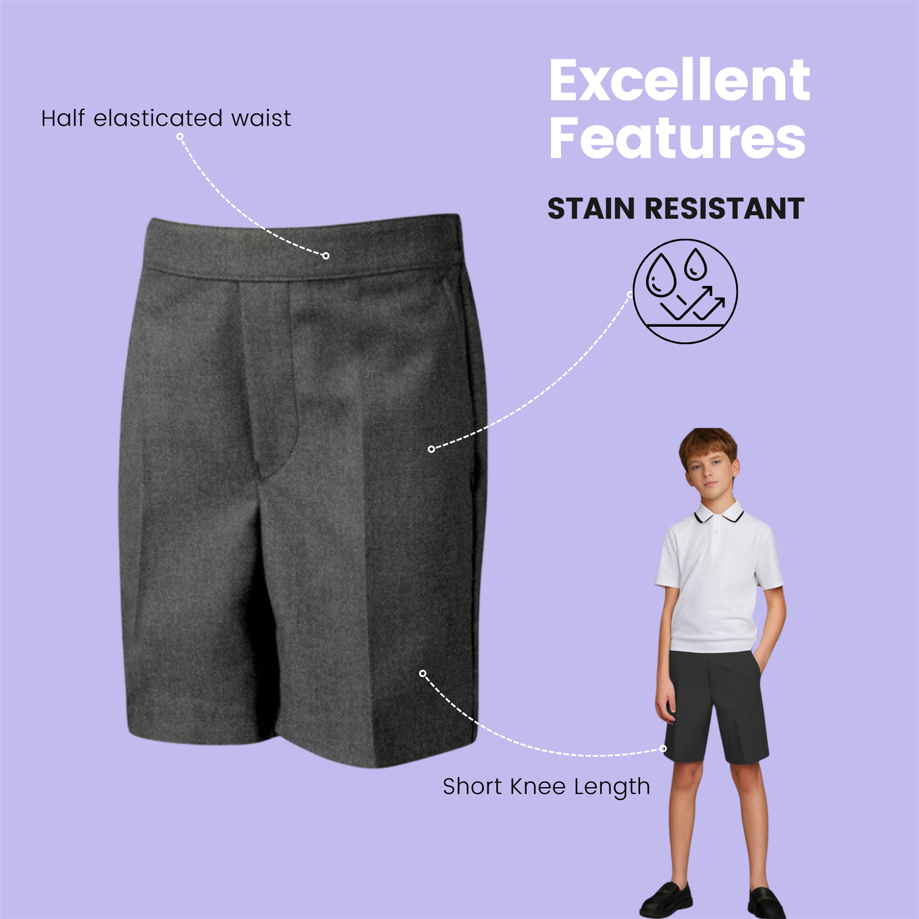 Boys School Short Trousers Half Elastic Back Pull On Uniform Shorts Pants 2-10 Product Info: Description: We are committed to providing high-quality, customer-oriented service. Uniform short trouser for Boys is designed to protect your kid while running and tumbling on the playground. Dries quickly after wash. Dress up your child in these school trousers all the year - Winter, Summer, Monsoon, Spring, and Autumn. Get quality products at affordable deals. Product Code: UNIF_KID_SHORT_DNBTHES