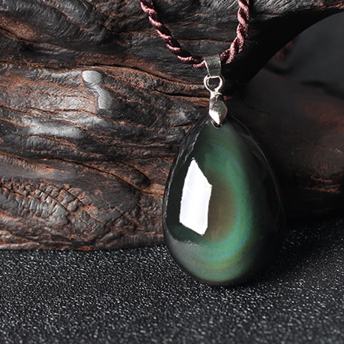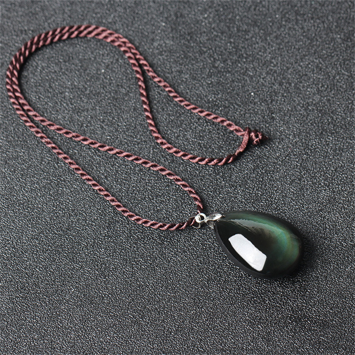 Natural Rainbow Obsidian Waterdrop Pendant Women Men Lucky Necklace Jewelry Gift