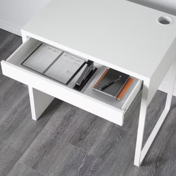 Das Schreibtischmodell Micke in Weiß passt ideal in jeden Raum.