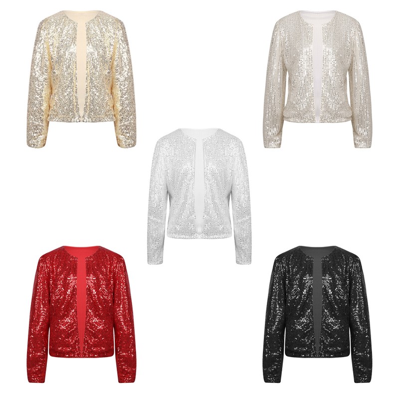 Womens Sparkling Sequin Jacket Open Front Coat Long Sleeve Outwear for Cocktail Party Club.