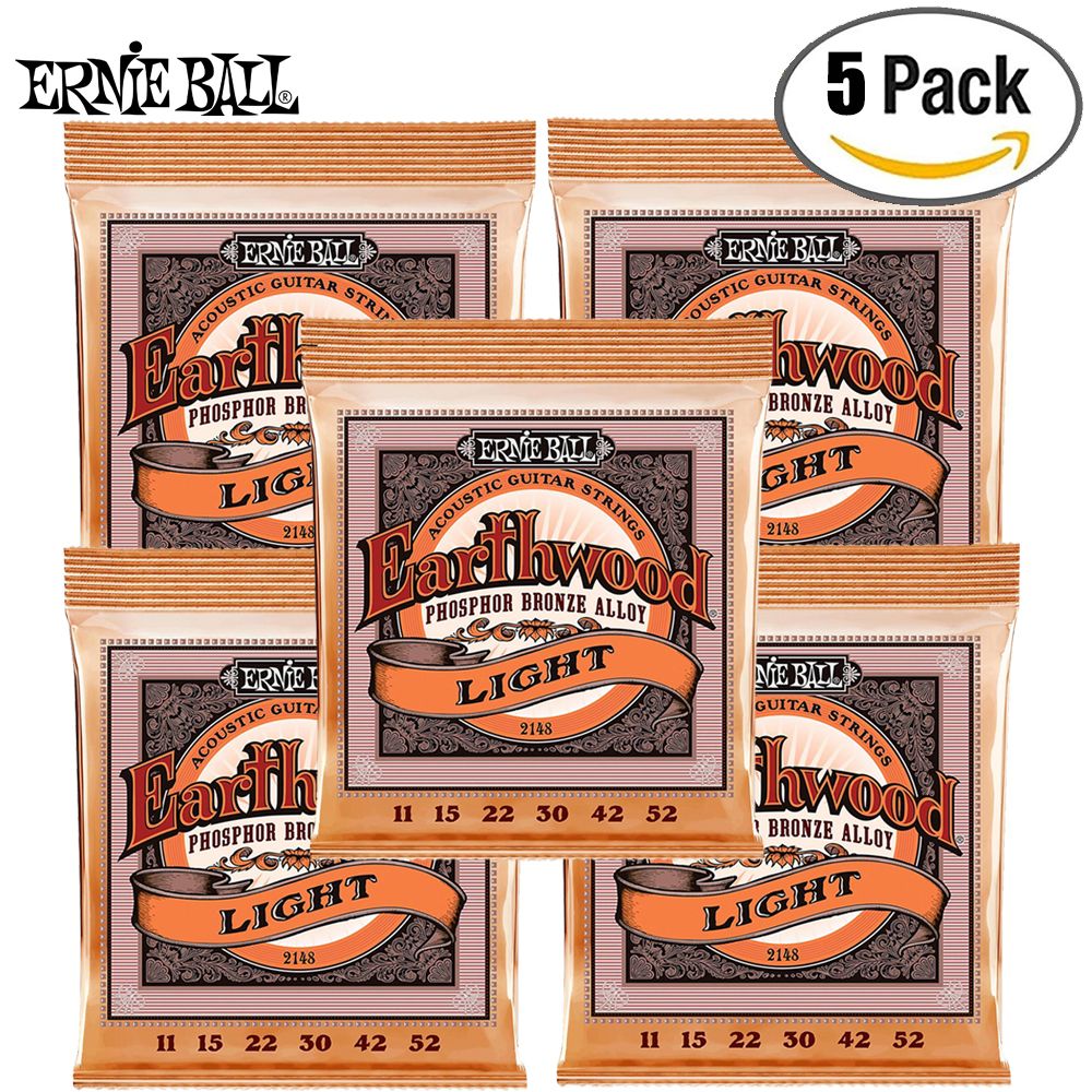 5-PACK Ernie Ball 2148 Earthwood Phosphor Bronze Acoustic Guitar Strings 11-52